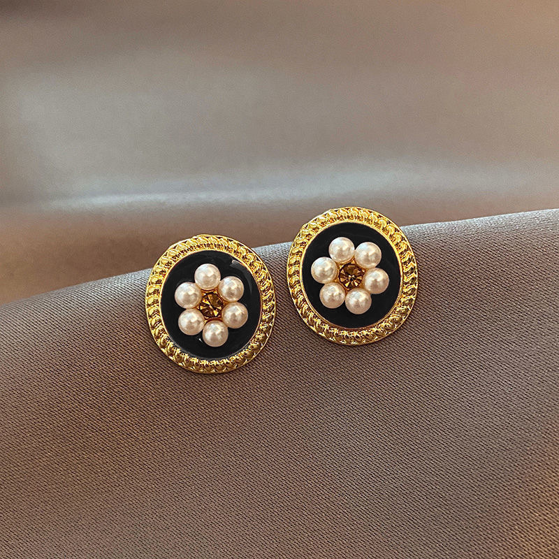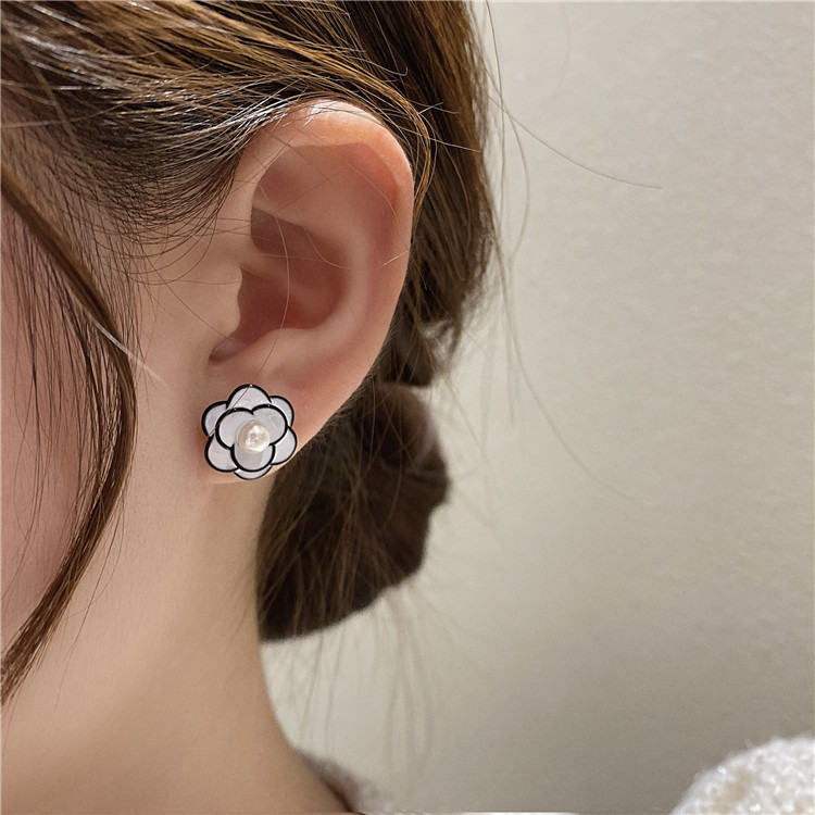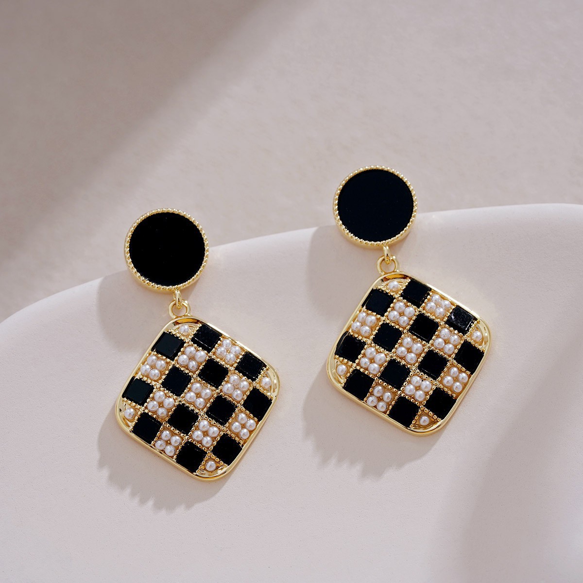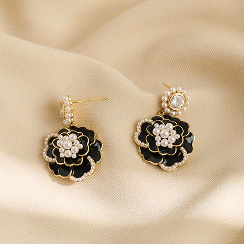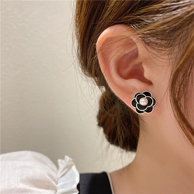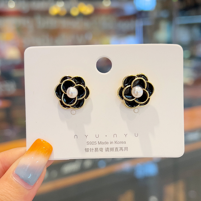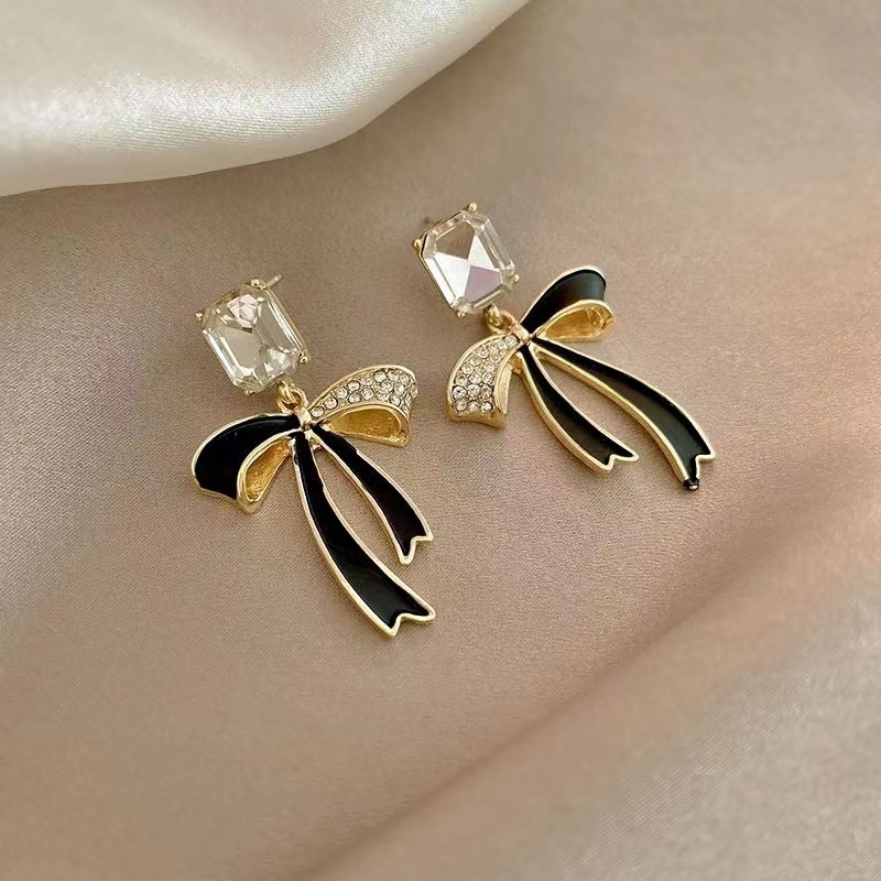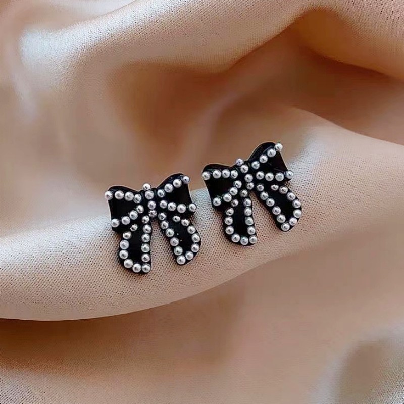 银针轻奢高级感黑色锆石爱心耳环小众气质几何耳钉独特设计感耳饰