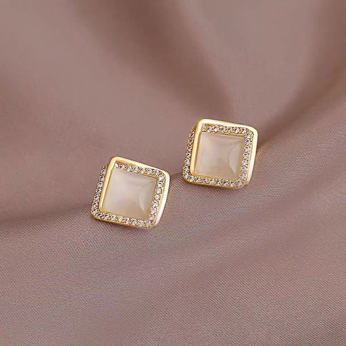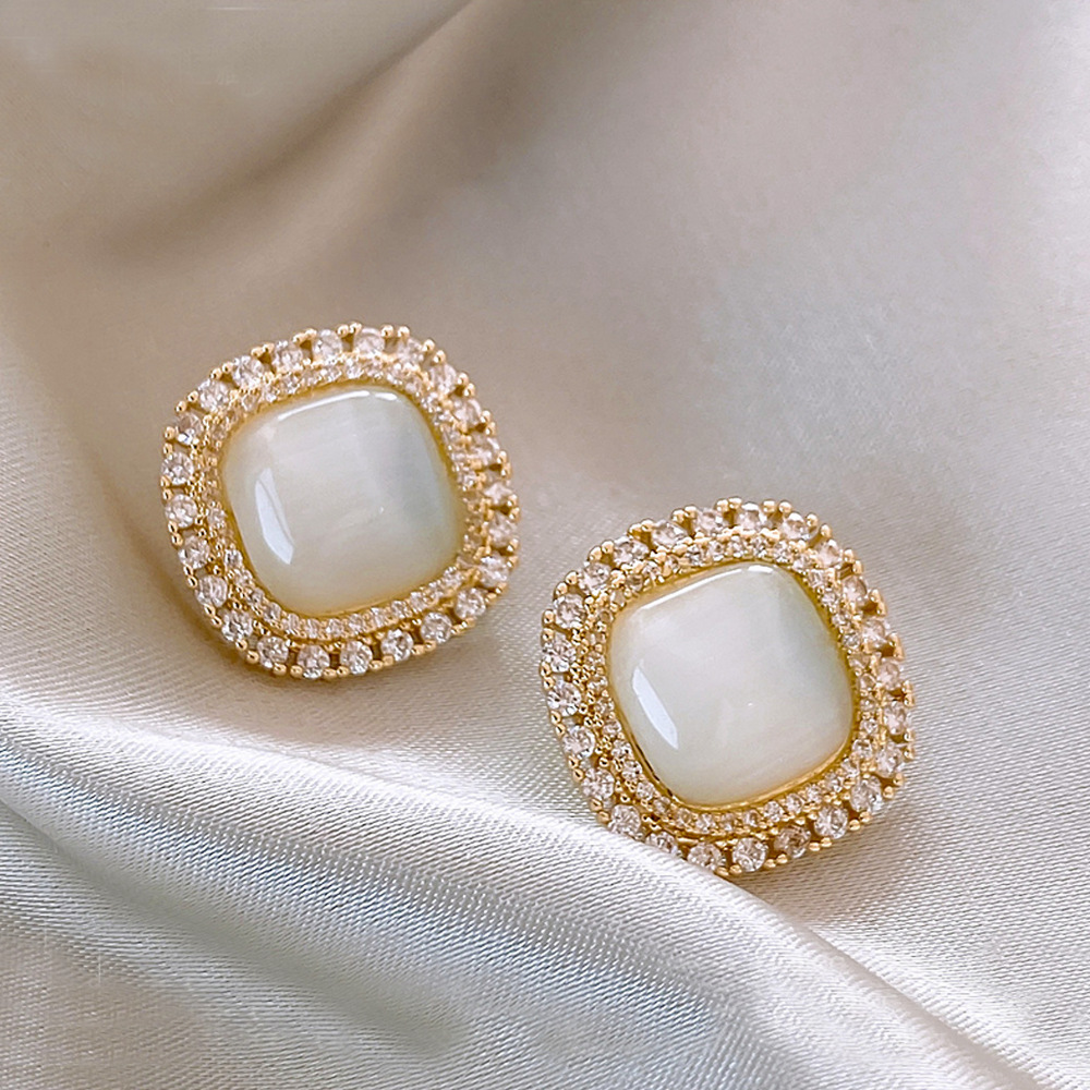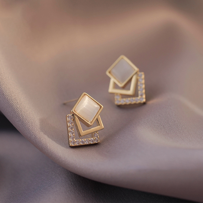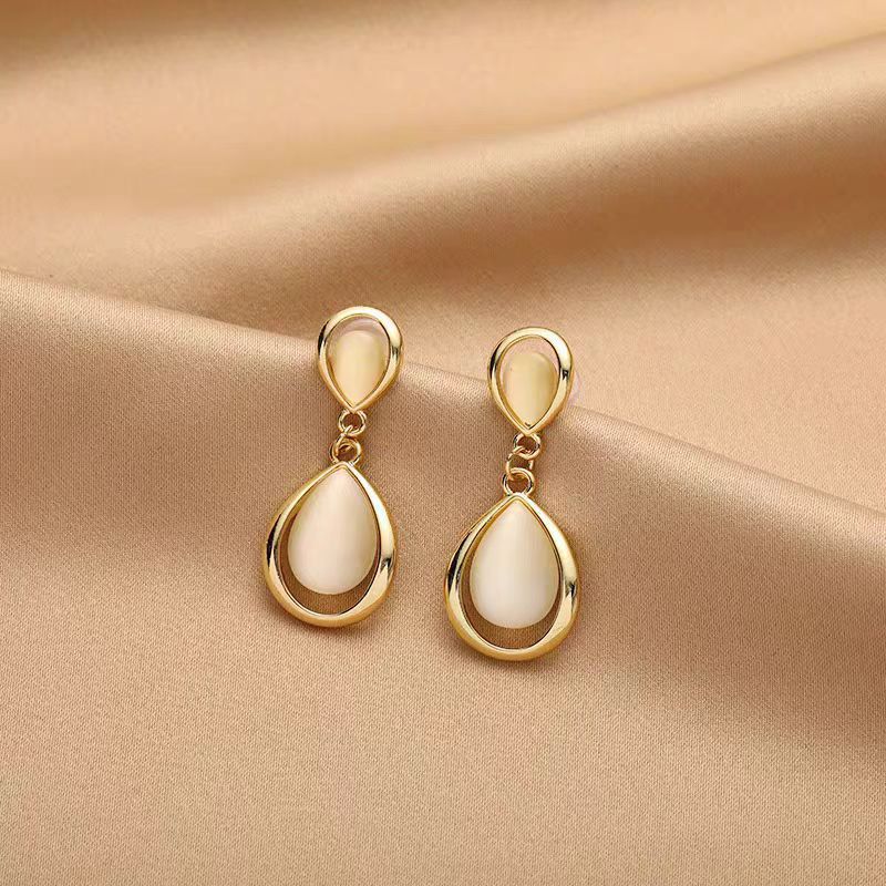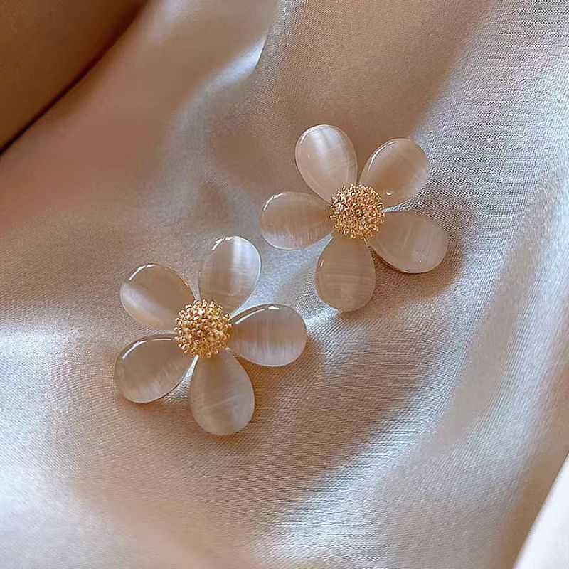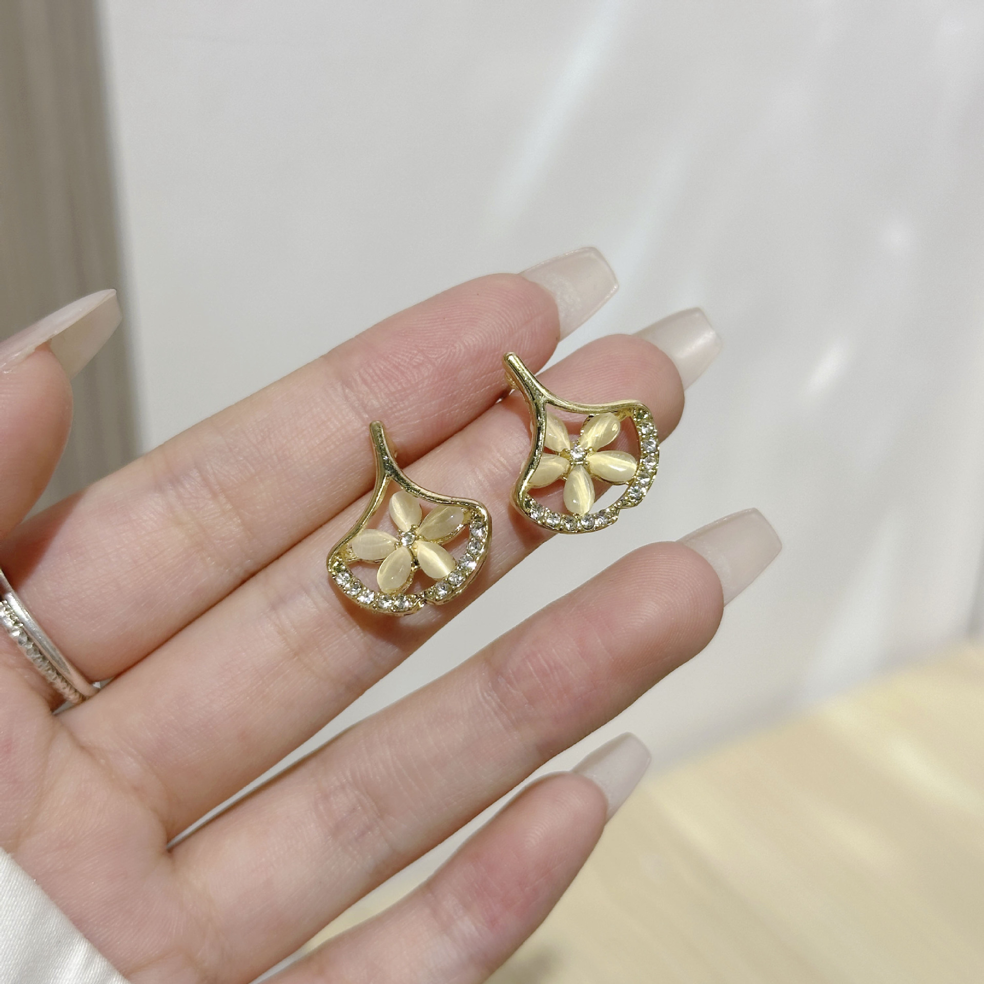银针优雅小香风猫眼石耳环小众时尚气质花朵耳钉百搭设计感耳饰女