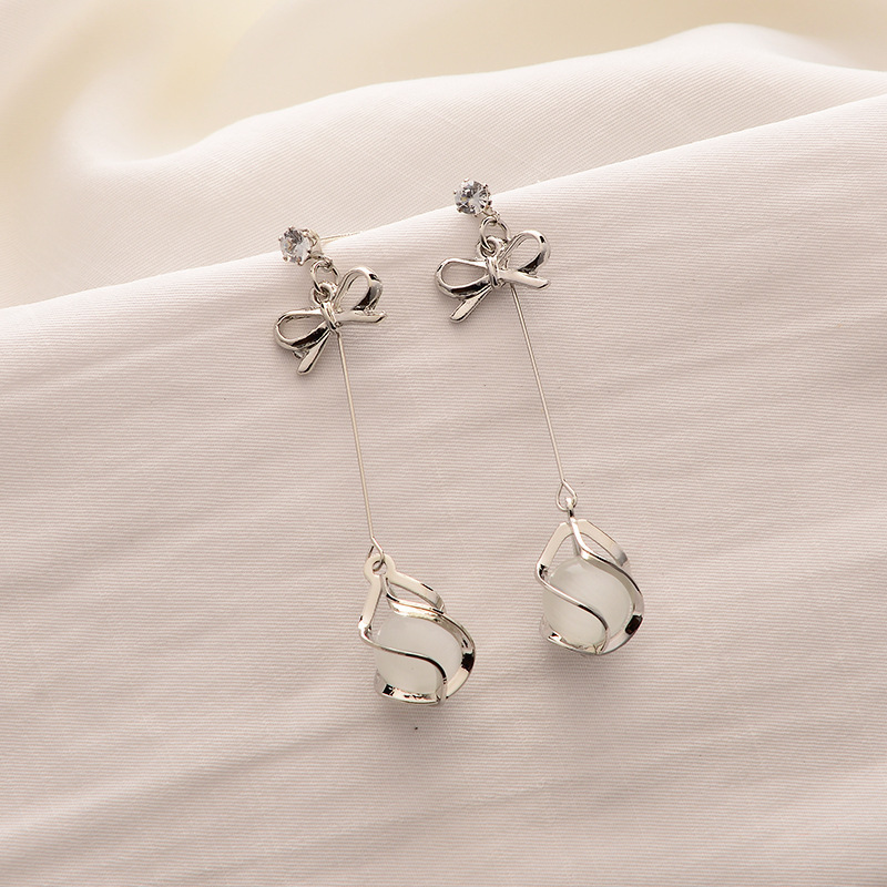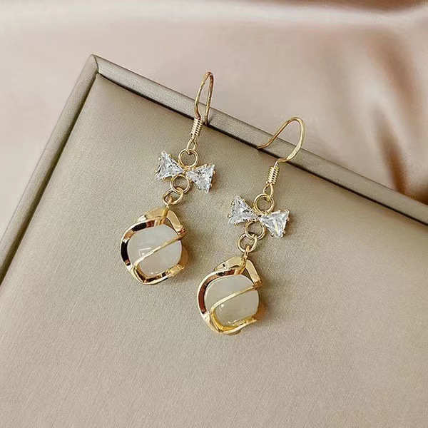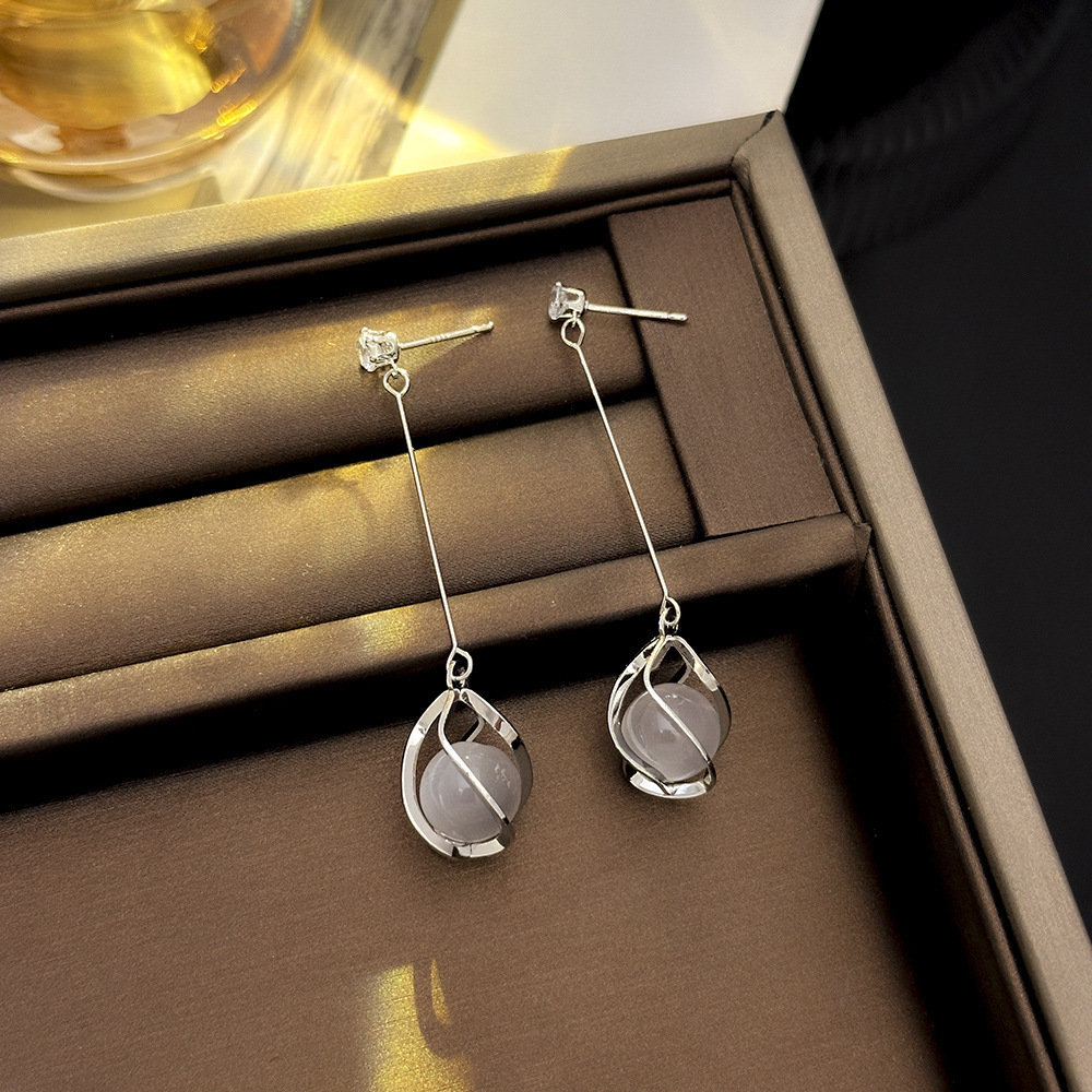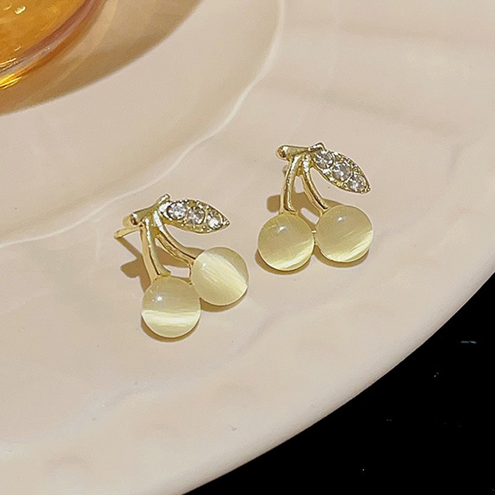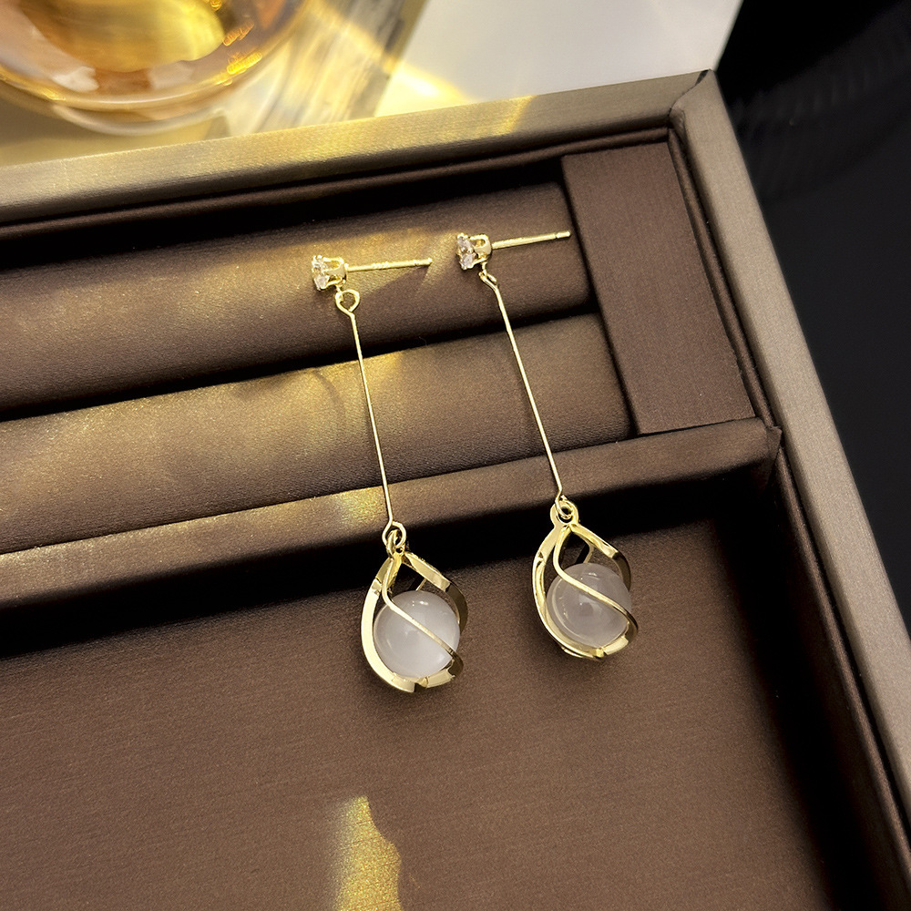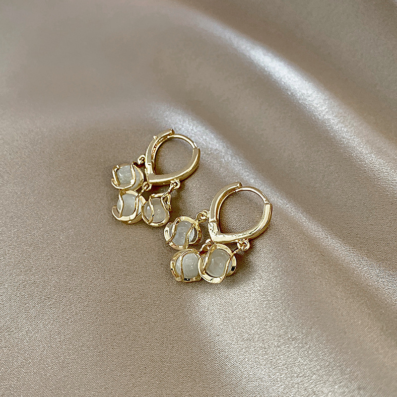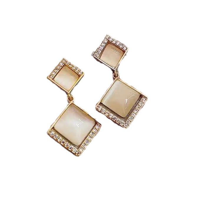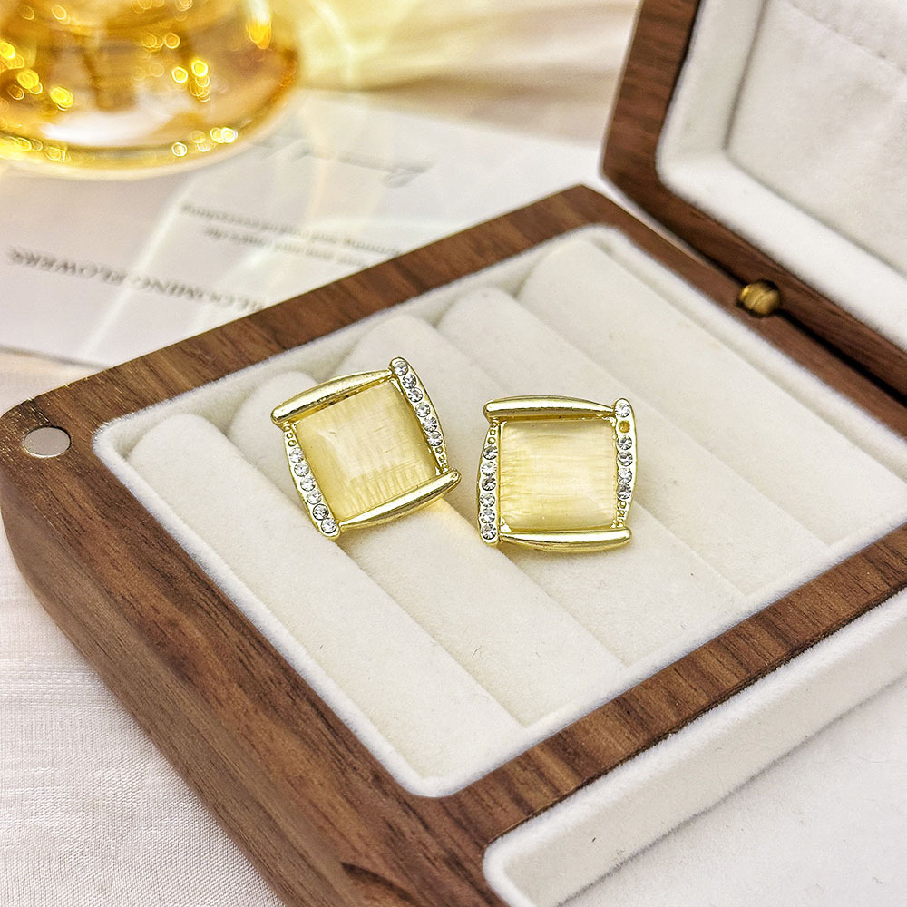 银针优雅小香风猫眼石耳环小众时尚气质花朵耳钉百搭设计感耳饰女