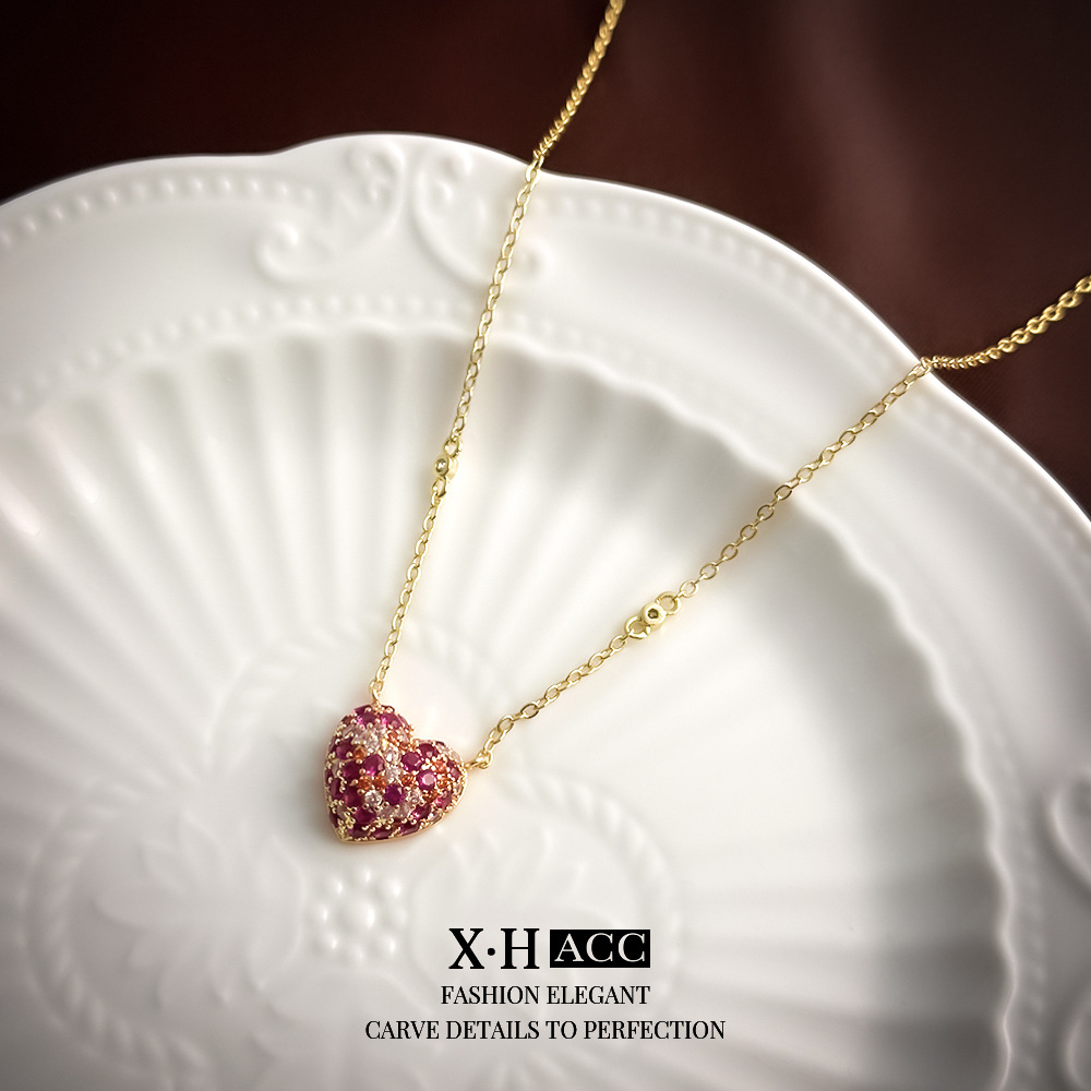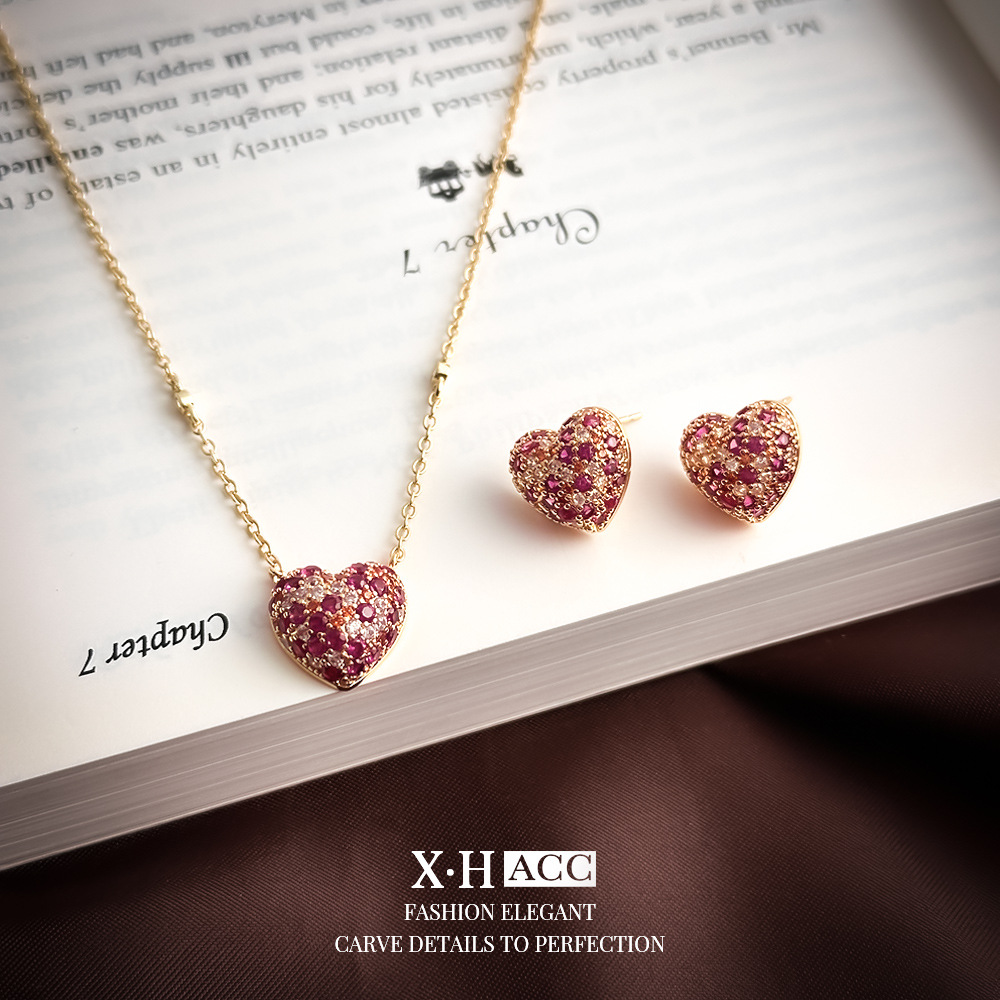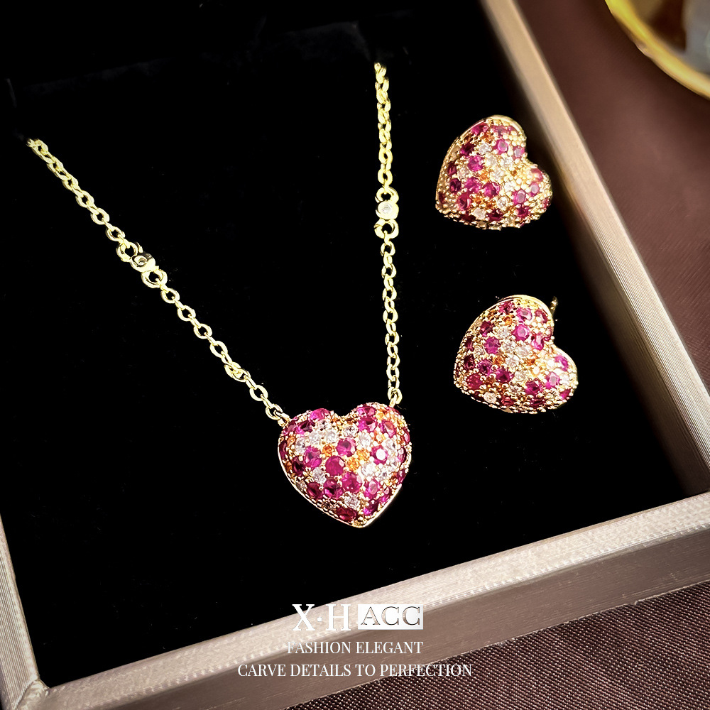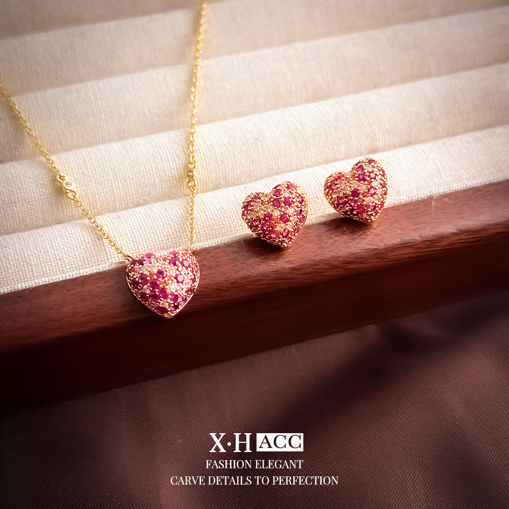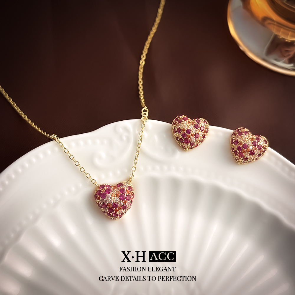真金电镀小众设计感微镶爱心耳钉复古气质项链轻奢高级感饰品套装