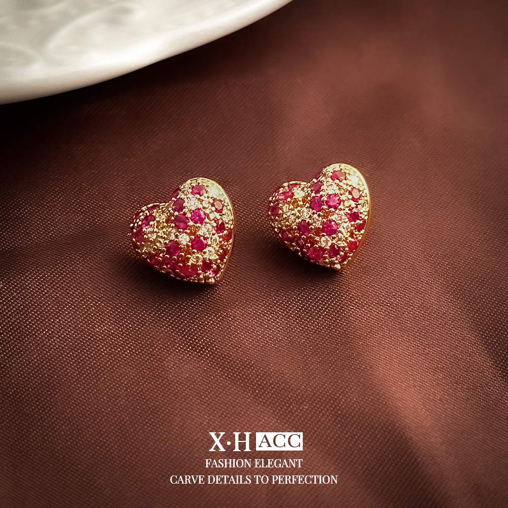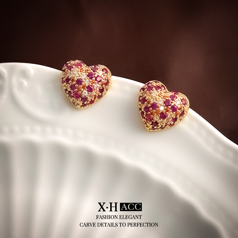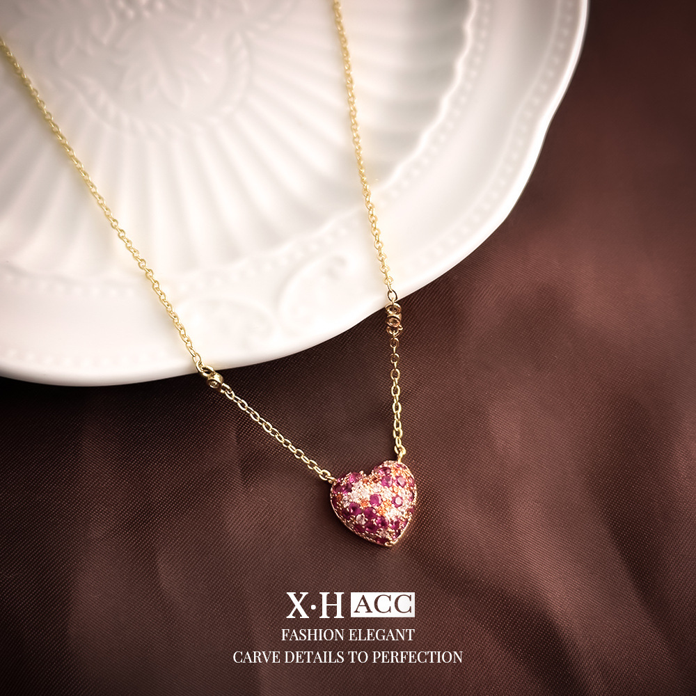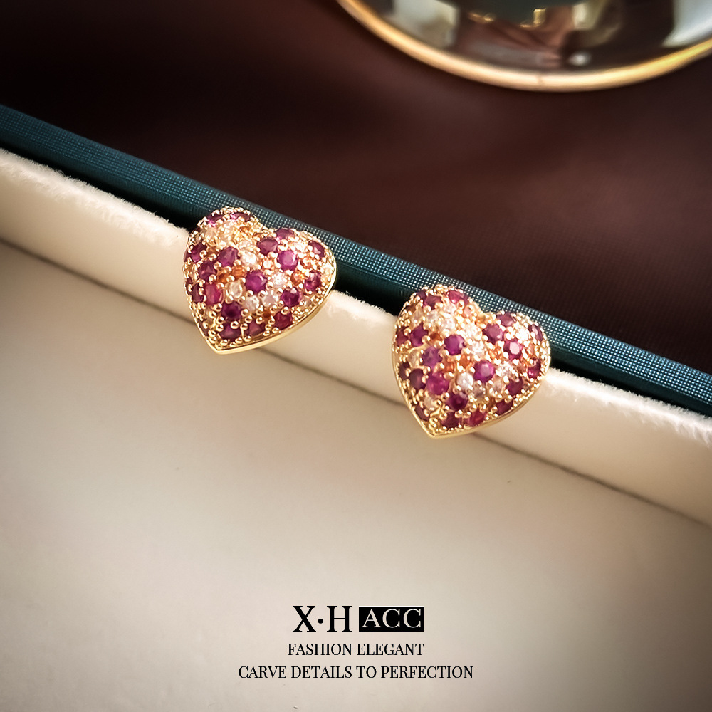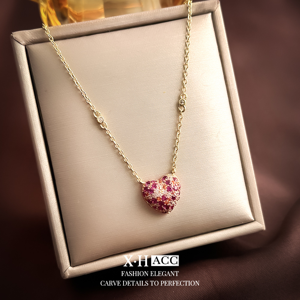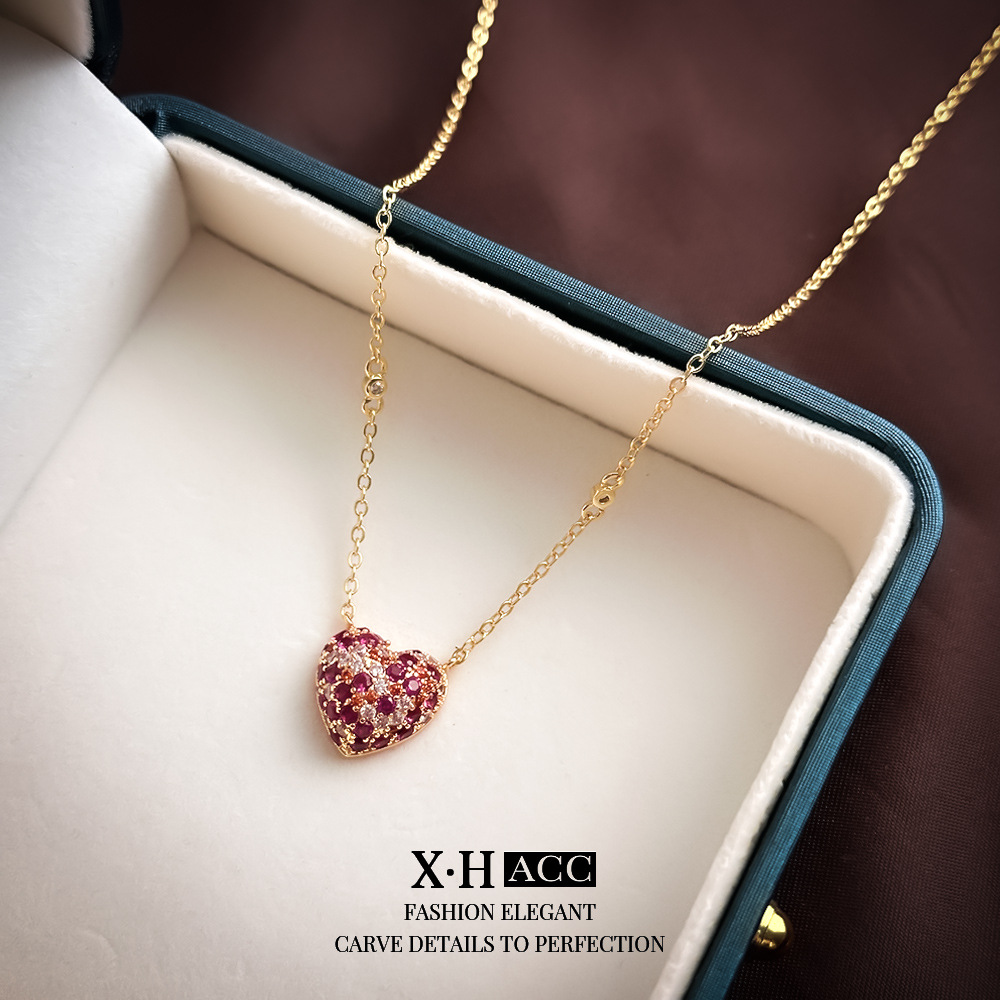 真金电镀小众设计感微镶爱心耳钉复古气质项链轻奢高级感饰品套装