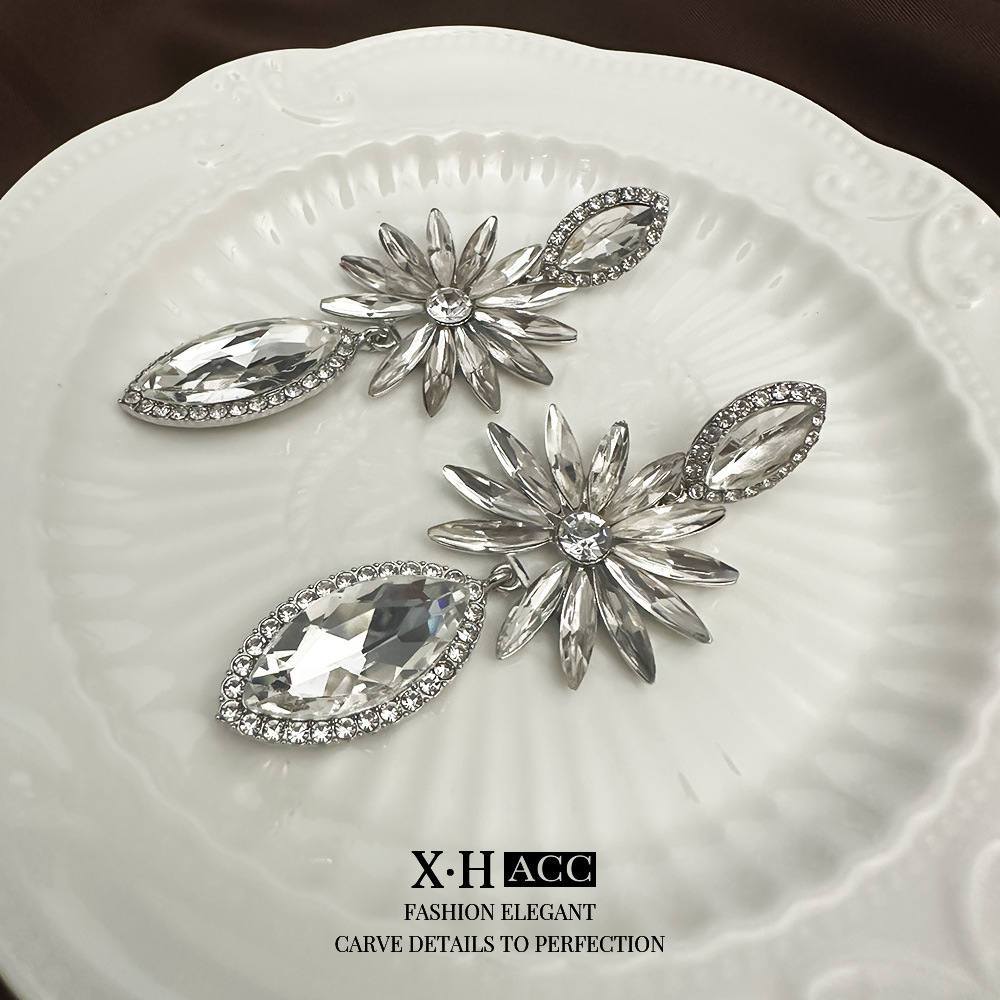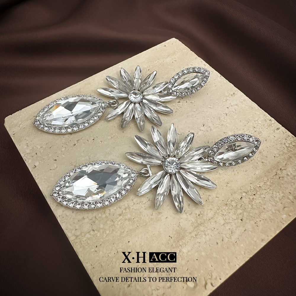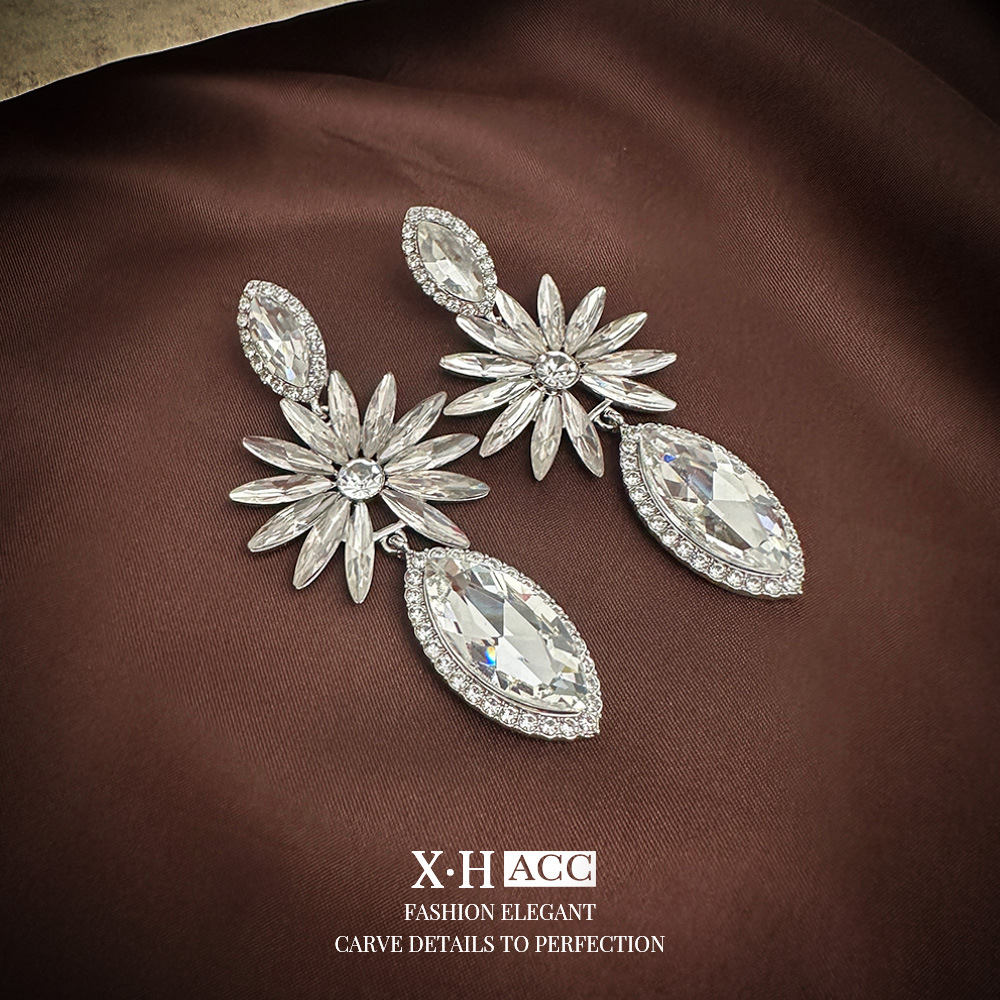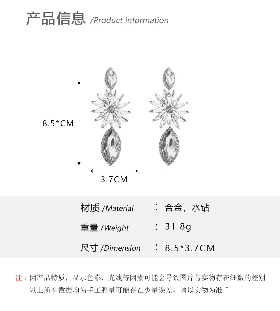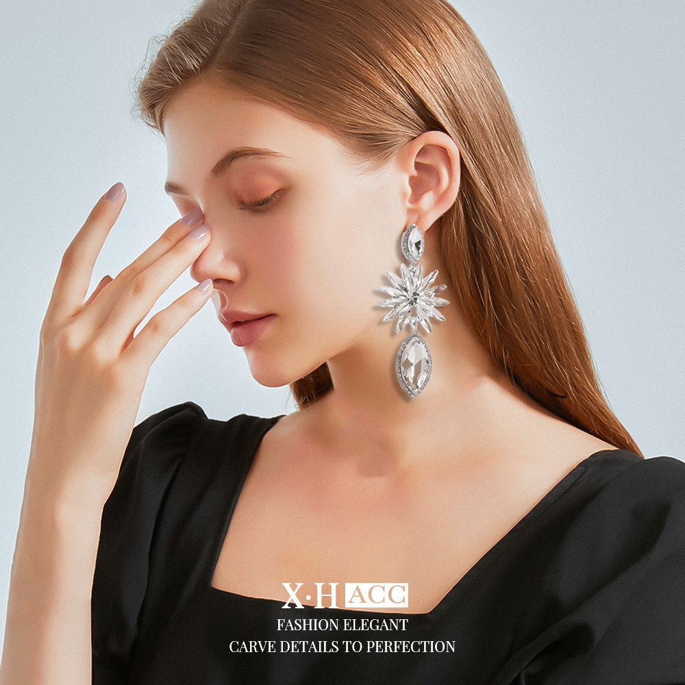 欧美时尚银针镶钻花朵几何耳环长款流苏耳钉五角星耳坠个性耳饰女