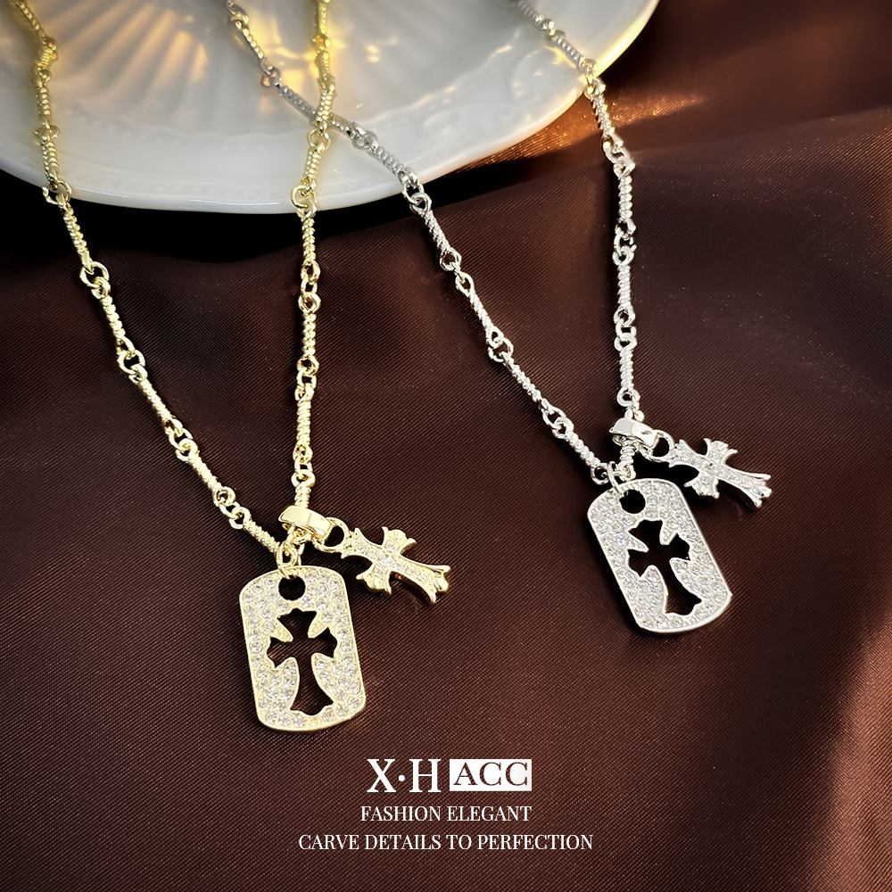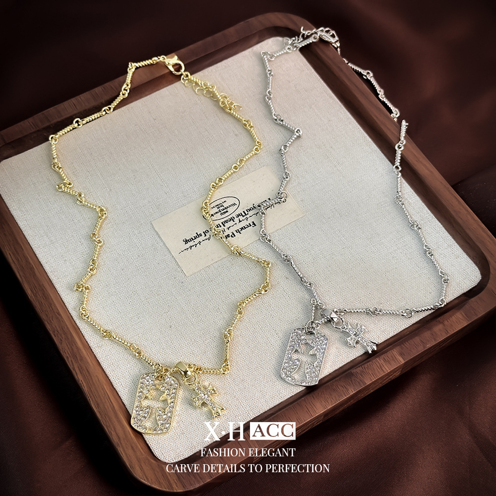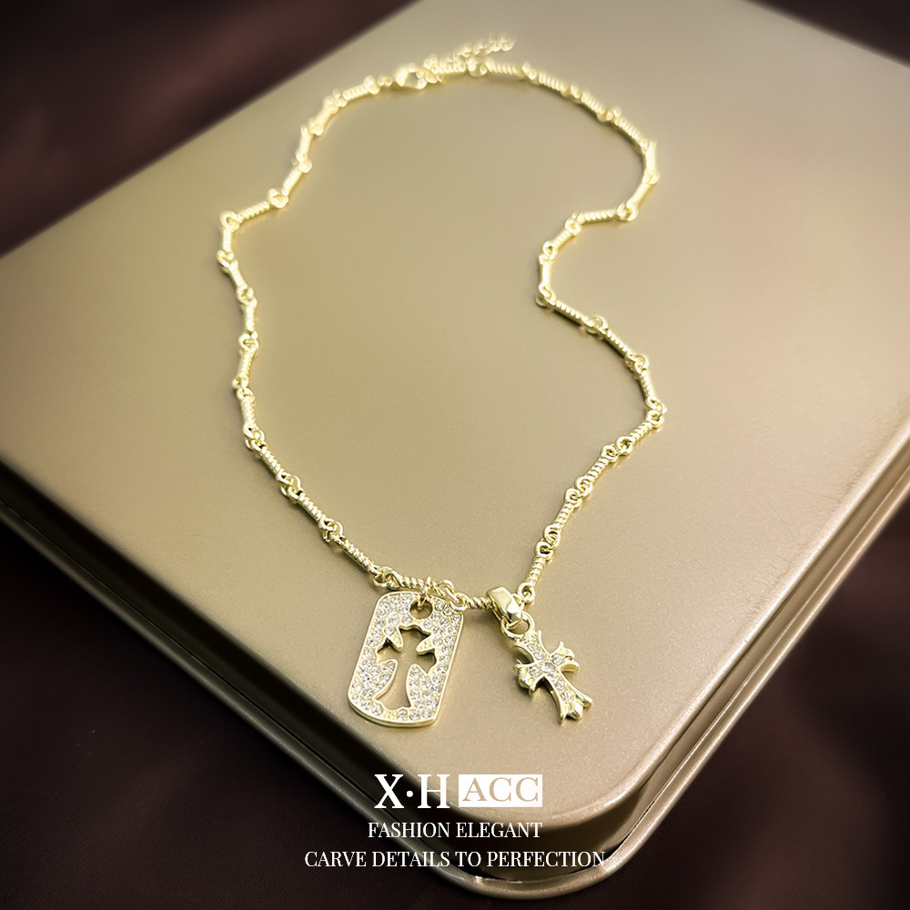 高定欧美时尚满钻镂空十字架项链小众设计感锁骨链轻奢高级感项饰