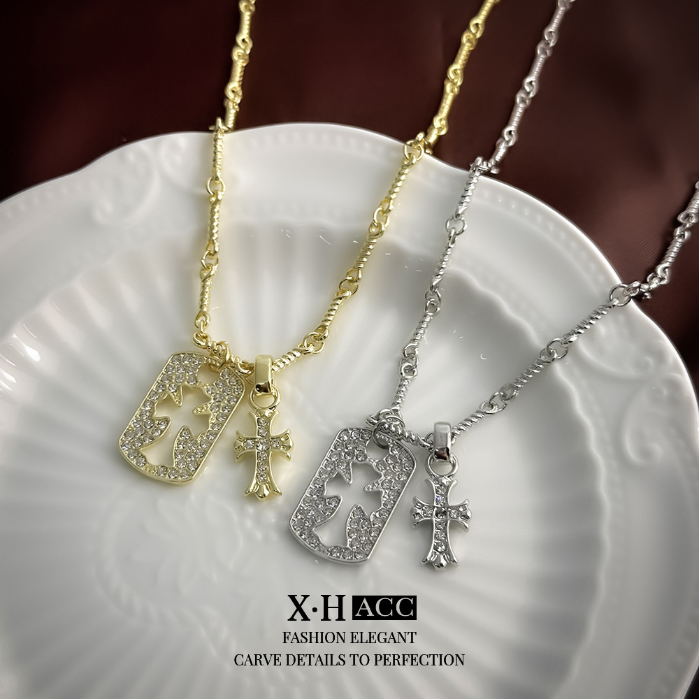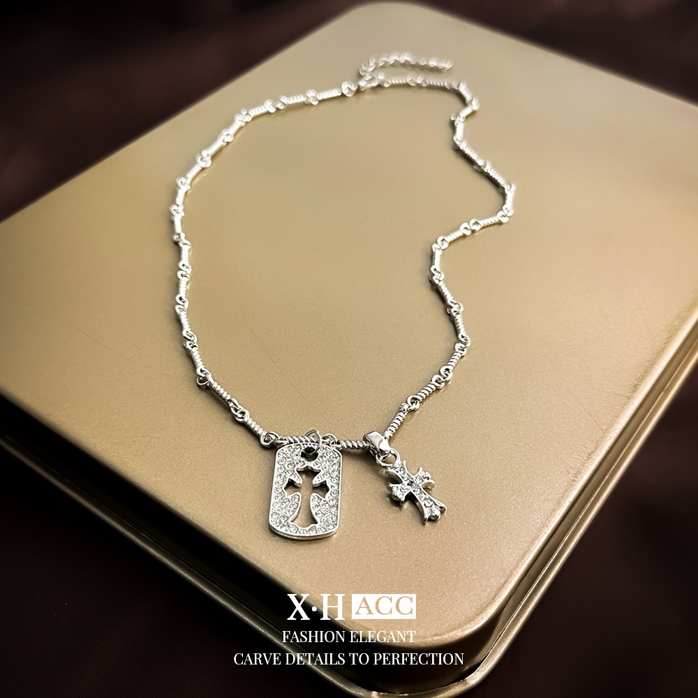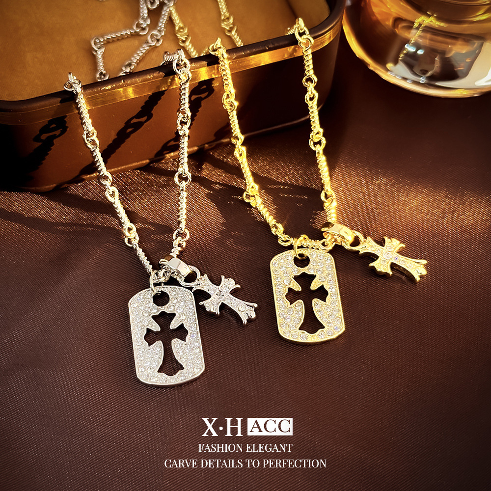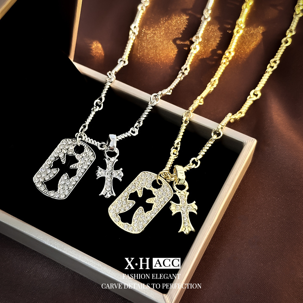 高定欧美时尚满钻镂空十字架项链小众设计感锁骨链轻奢高级感项饰