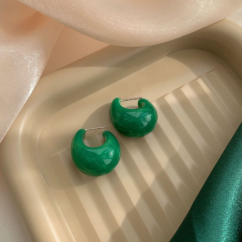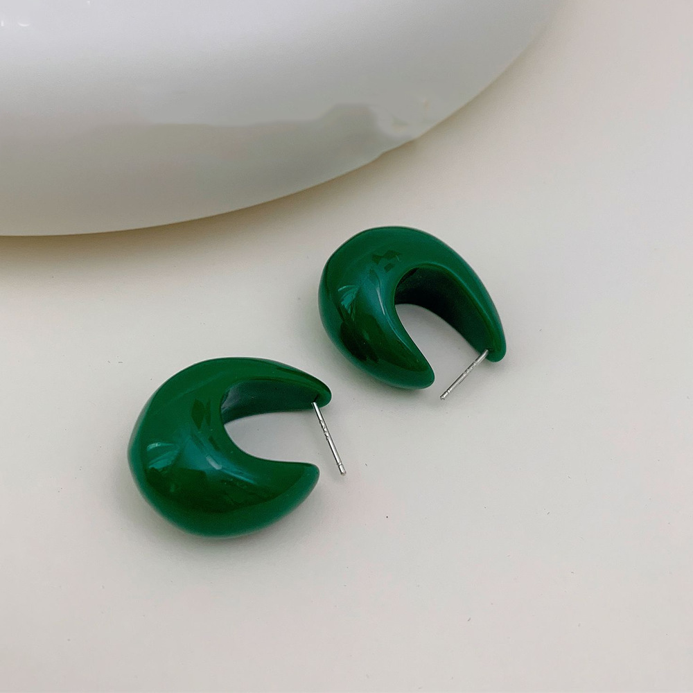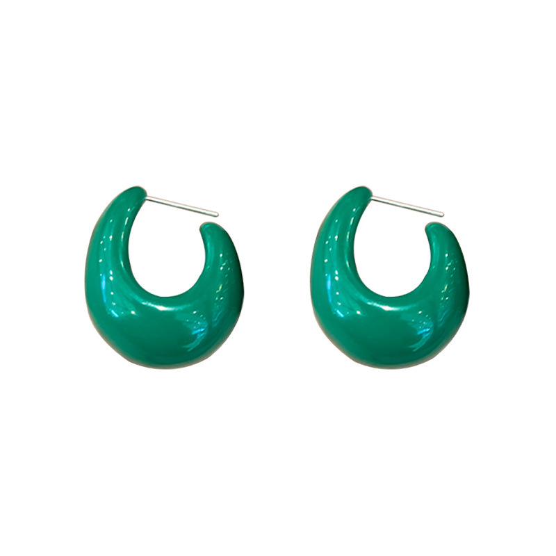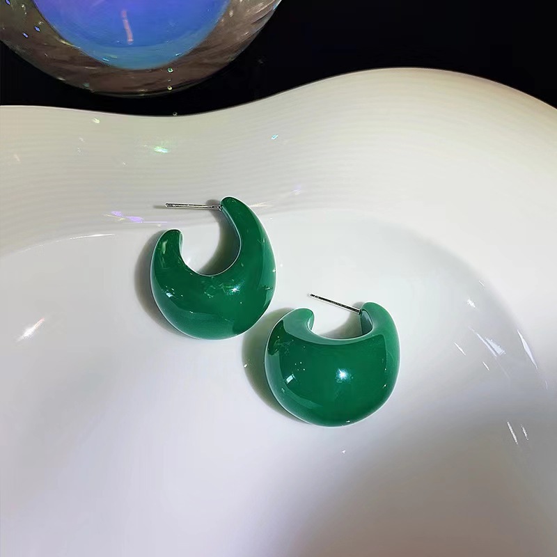 银针文艺复古字母u型祖母绿耳环女小众设计感夸张网红高级感耳饰