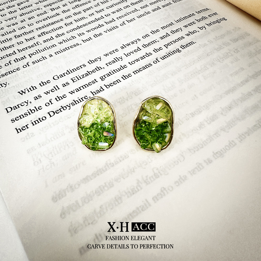 [绿野仙踪]小清新渐变色碎钻耳钉小众日常百搭耳环时尚高级感耳饰