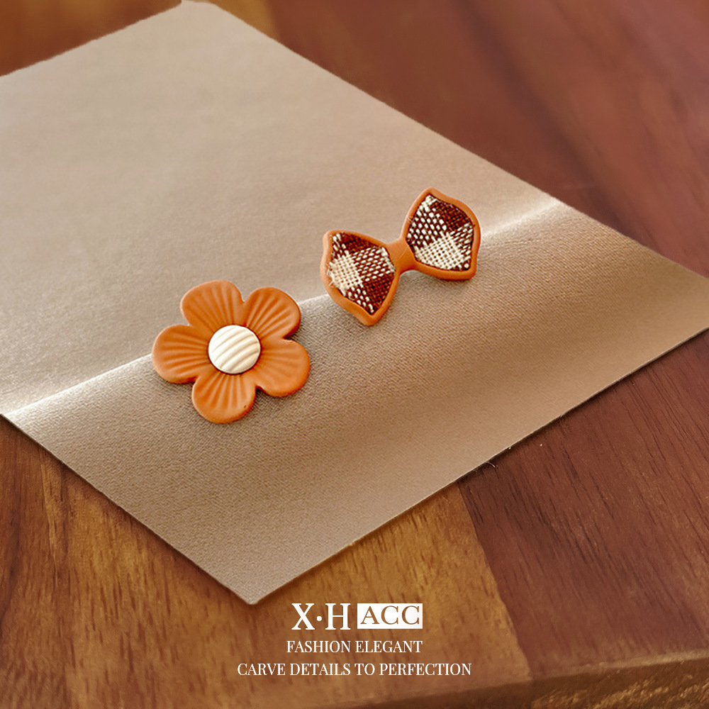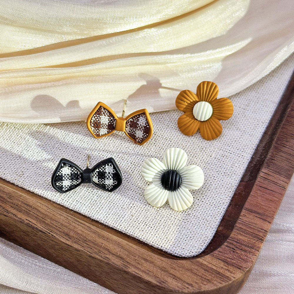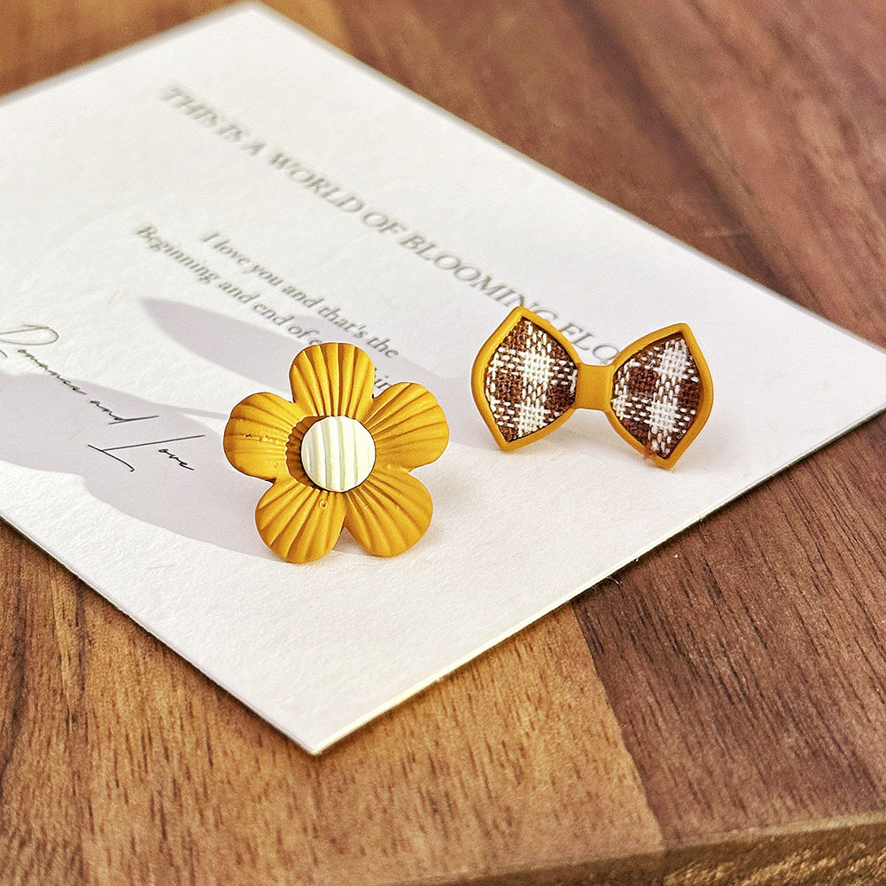 银针不对称烤漆花朵蝴蝶结耳钉甜美小众设计耳环小巧简约气质耳饰