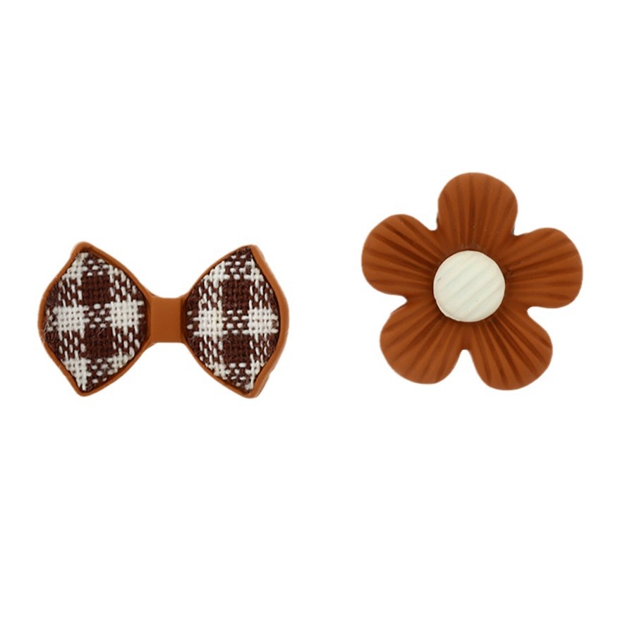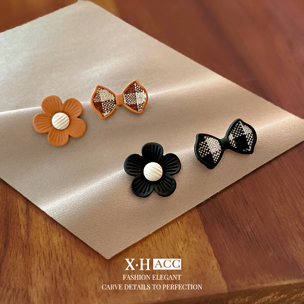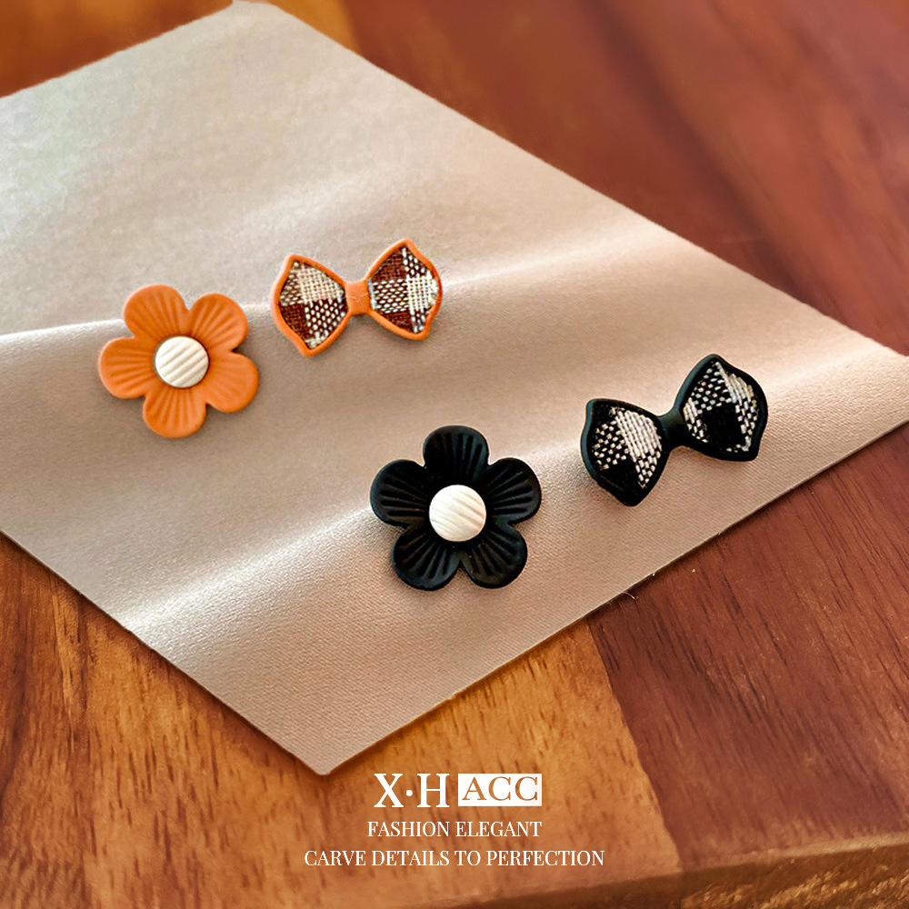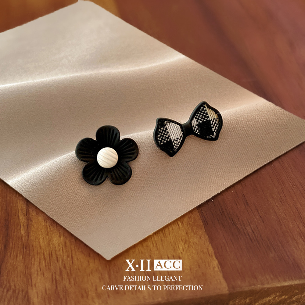 银针不对称烤漆花朵蝴蝶结耳钉甜美小众设计耳环小巧简约气质耳饰