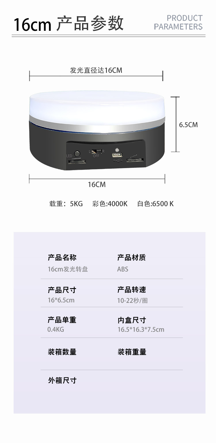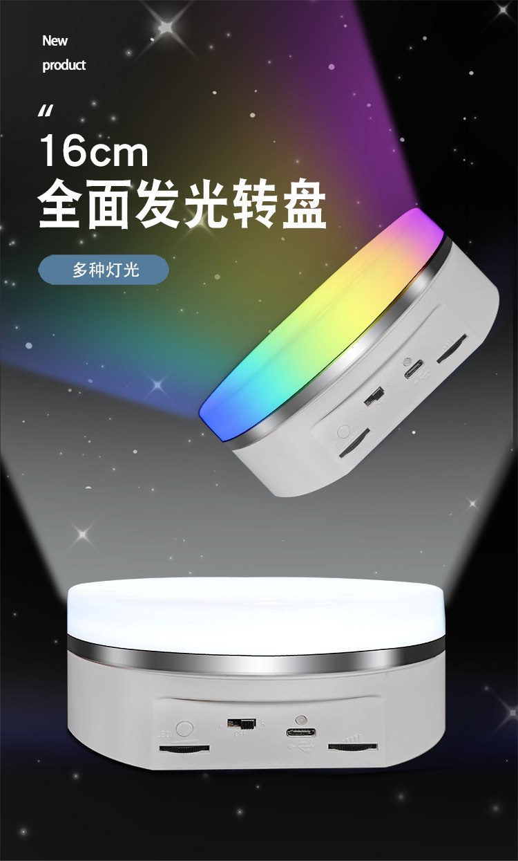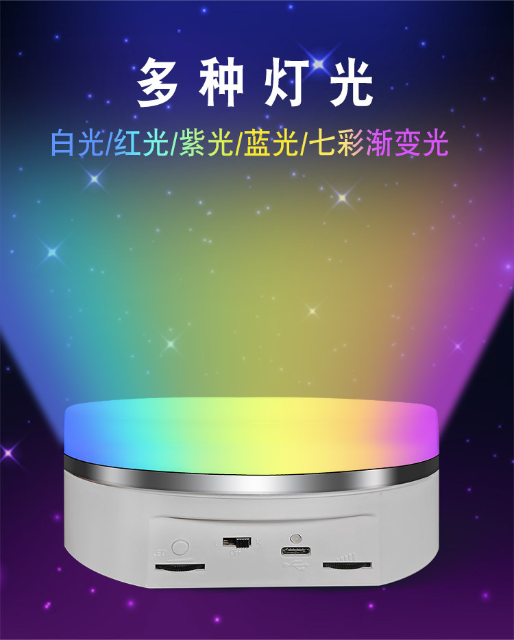 跨境新款电动展示台带灯七彩调速智能充电直播拍摄展示架电动转盘
