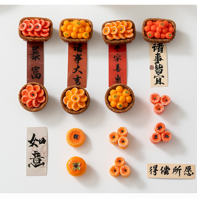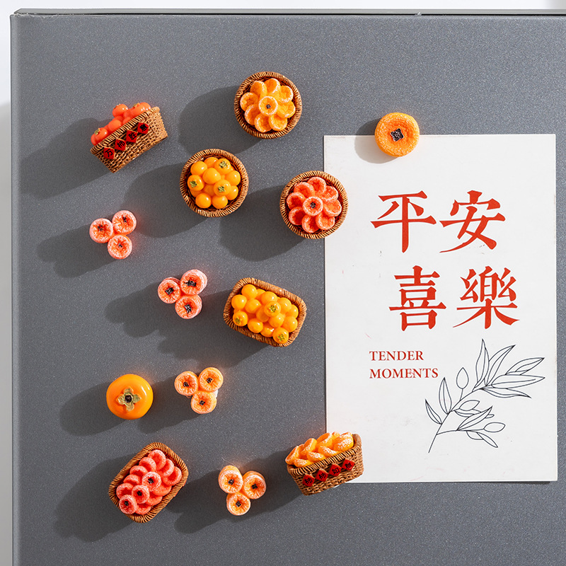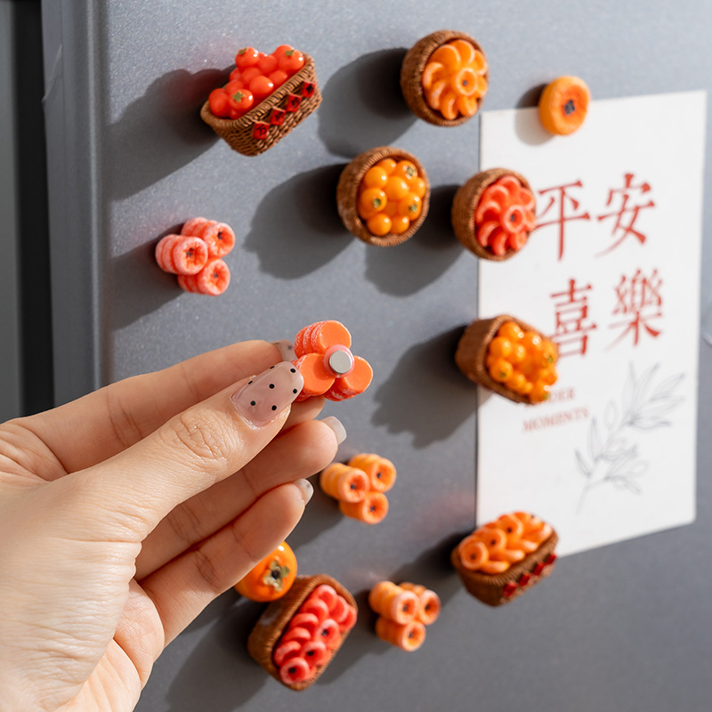 创意食玩柿子冰箱贴可爱柿饼磁吸贴家居装饰柿柿如意diy迷你配件