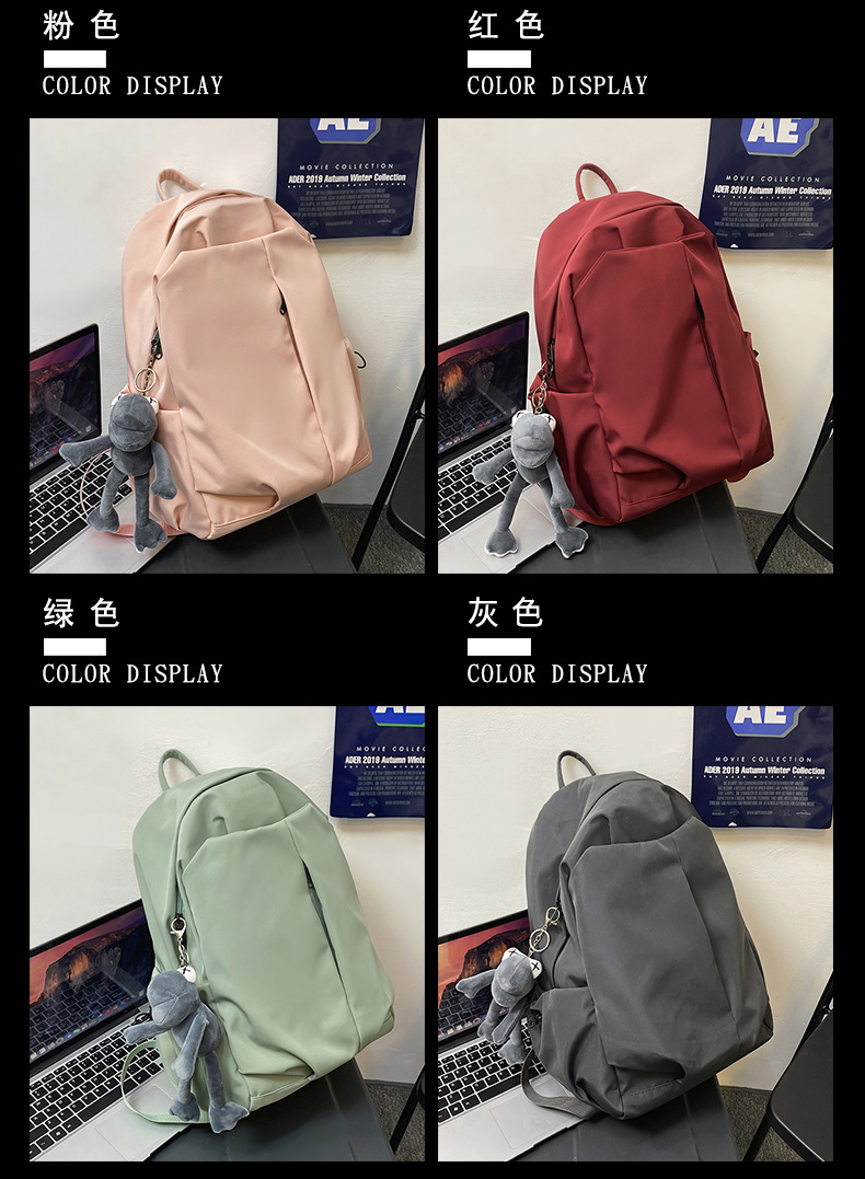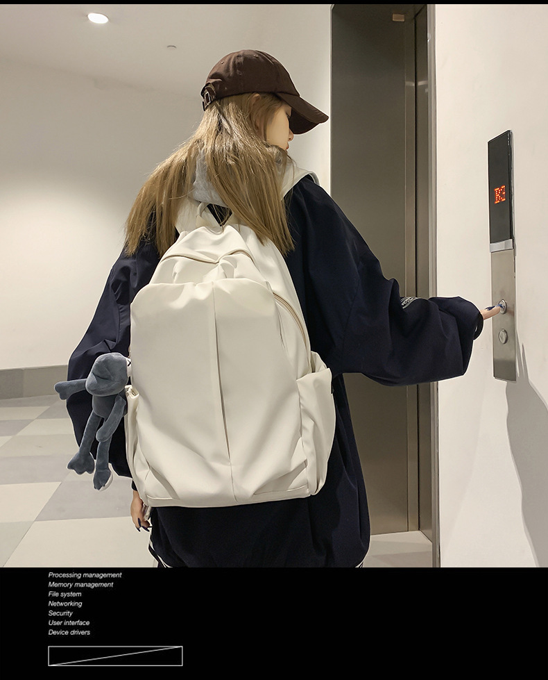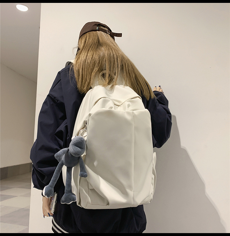 书包女大学生简约ins潮酷大容量双肩包韩版纯色轻便休闲旅行背包