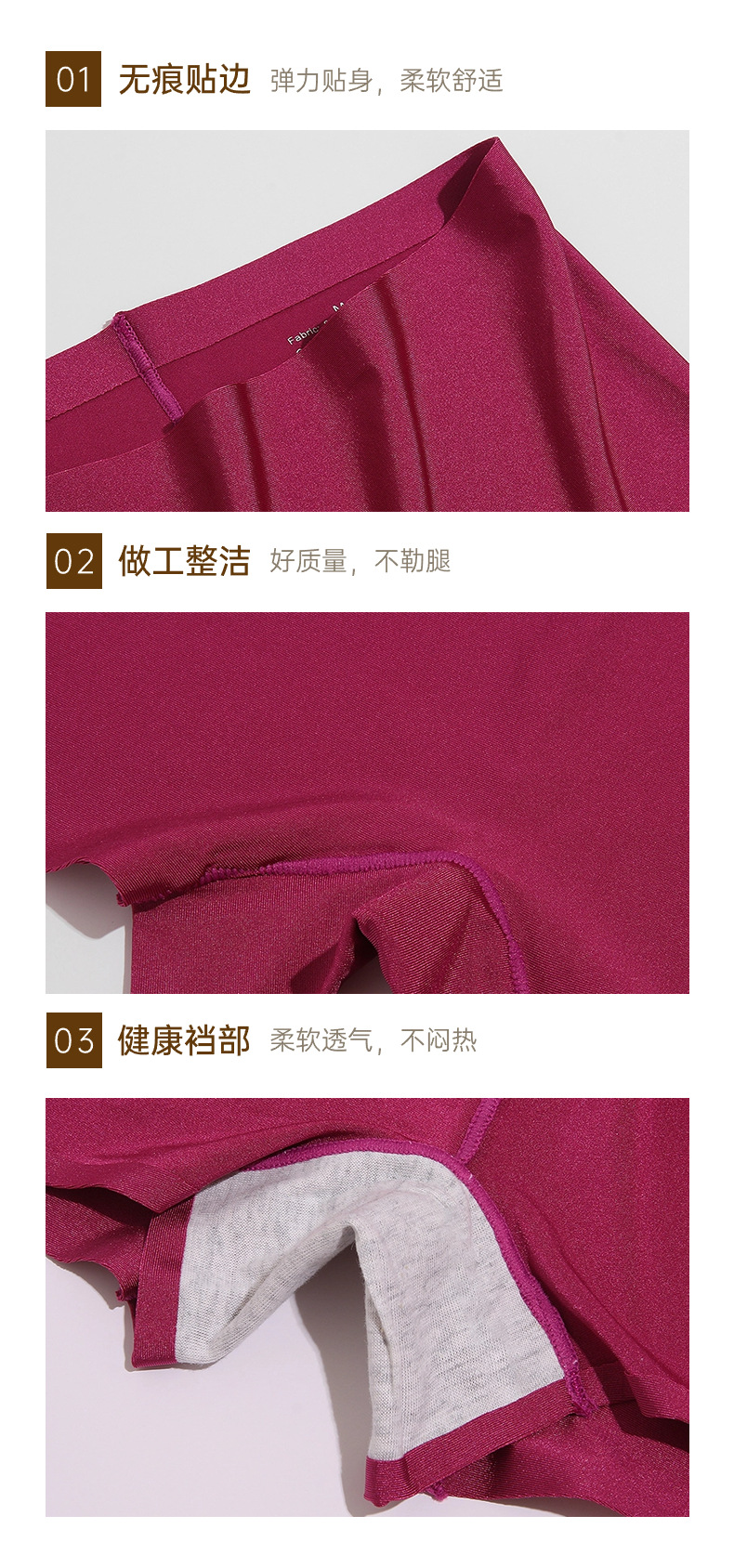 外贸新款珠光无痕内裤女贴身舒适女士平角裤冰丝透气平脚裤安全裤