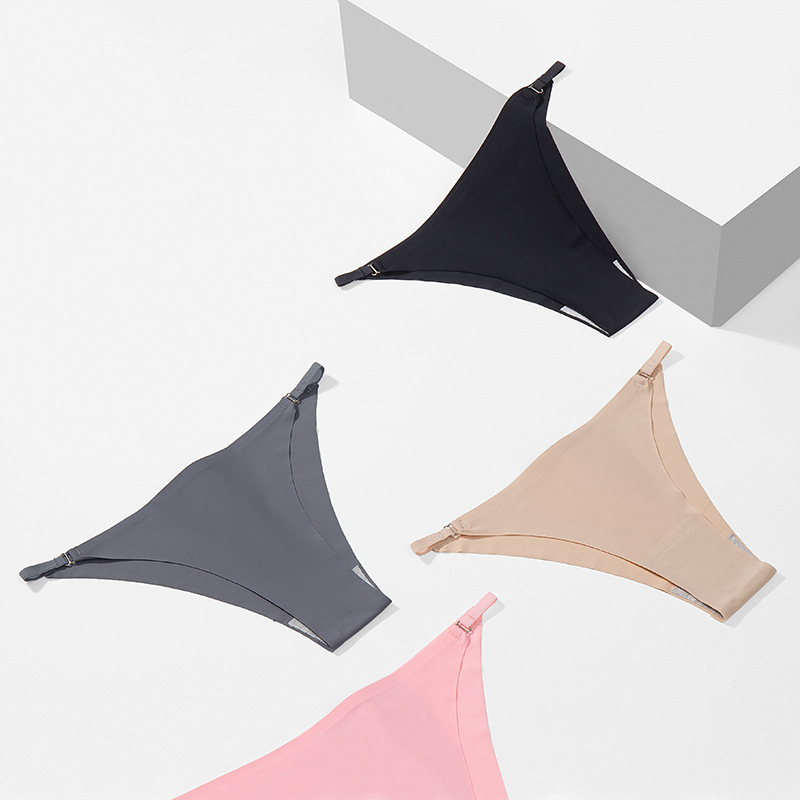 外贸冰丝无痕内裤女时尚简约纯色细带三角裤性感比基尼裤舒适裤头