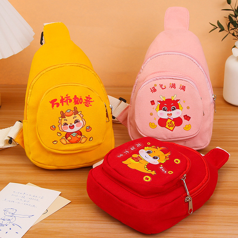 新款龙年新年儿童包包印刷logo宝宝斜挎包幼儿园儿童单肩包