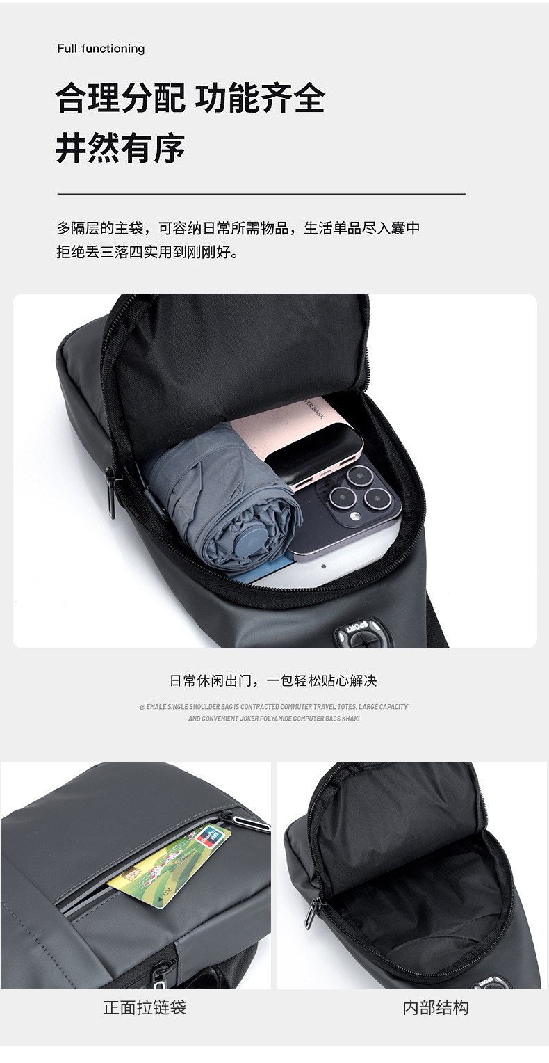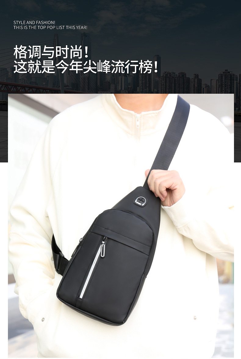 胸包男士跨包新款简约斜挎包户外休闲单肩包多功能商务男包胸前包