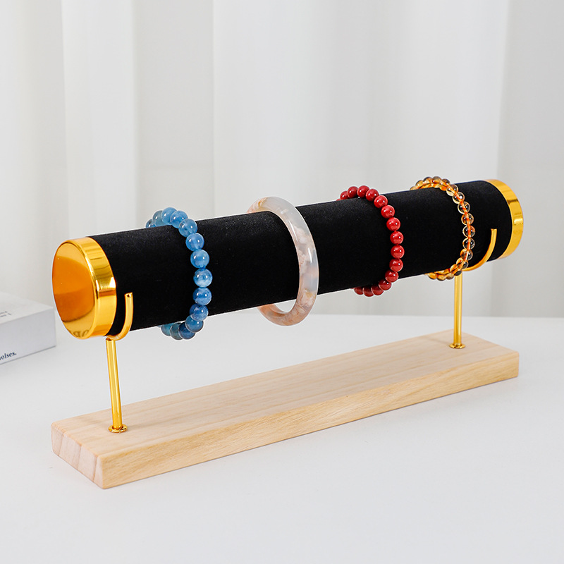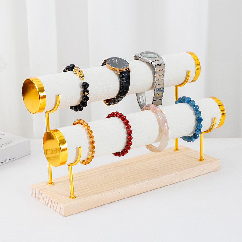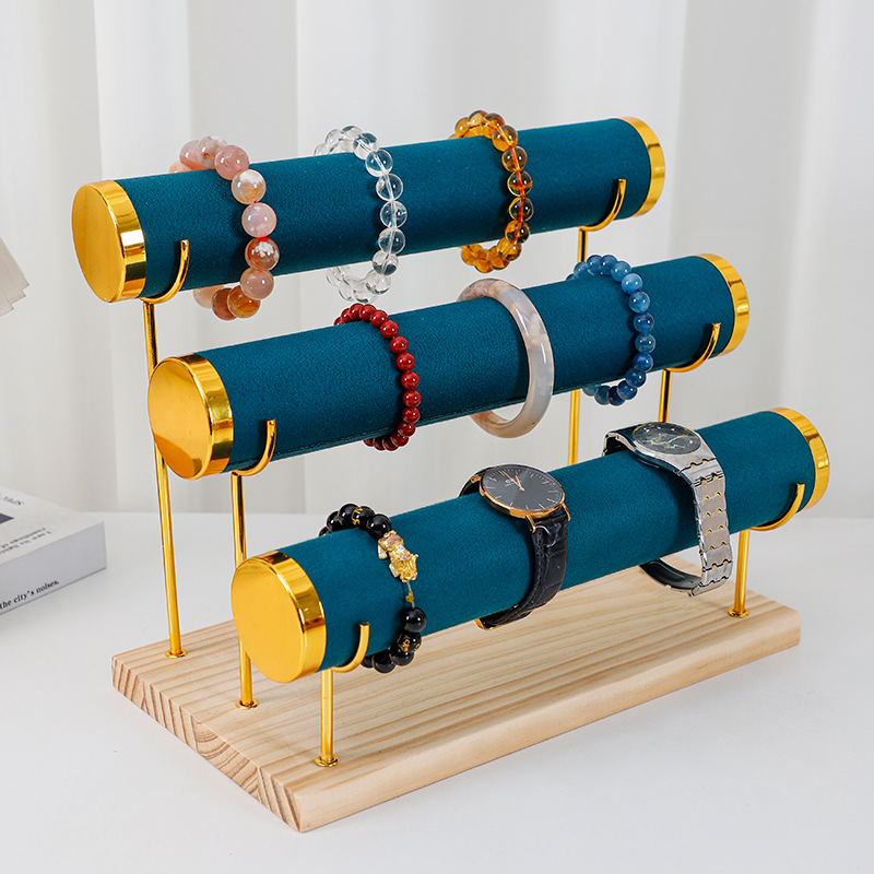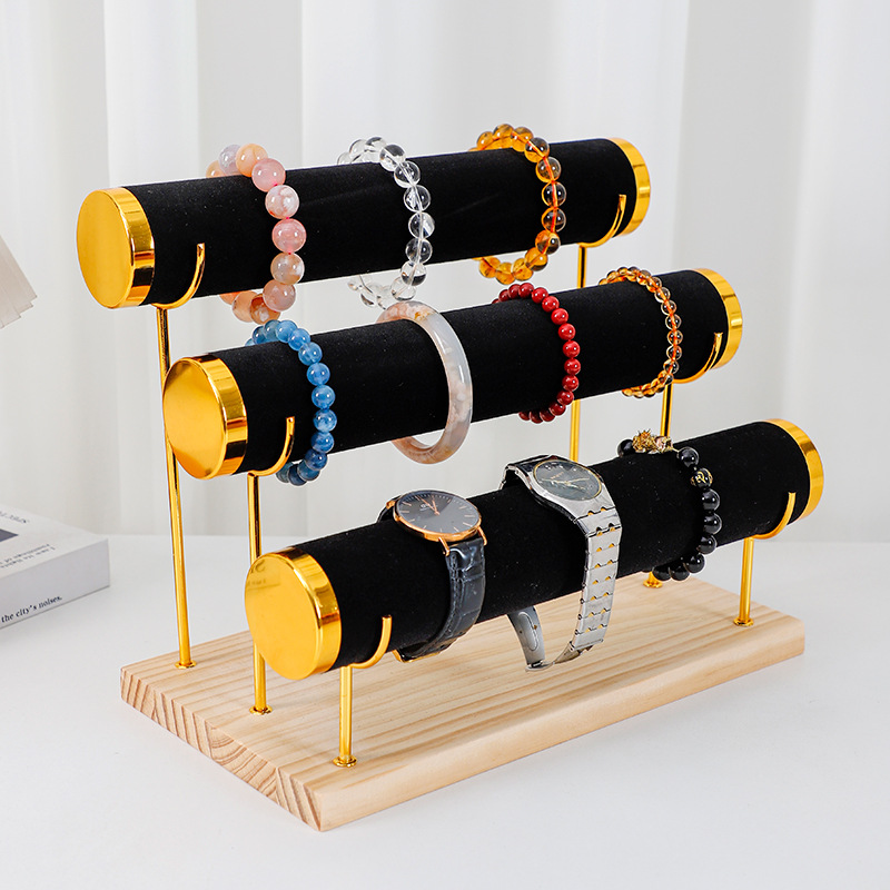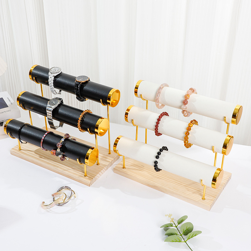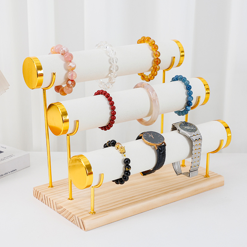 高档轻奢实木展示架手链手镯手表饰品实木铁艺绒布饰品收纳展示架