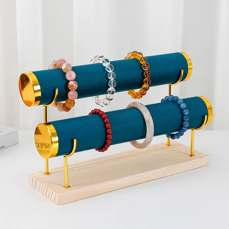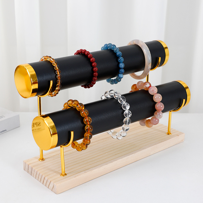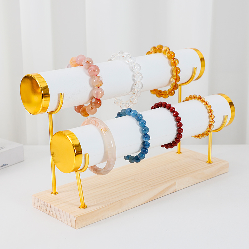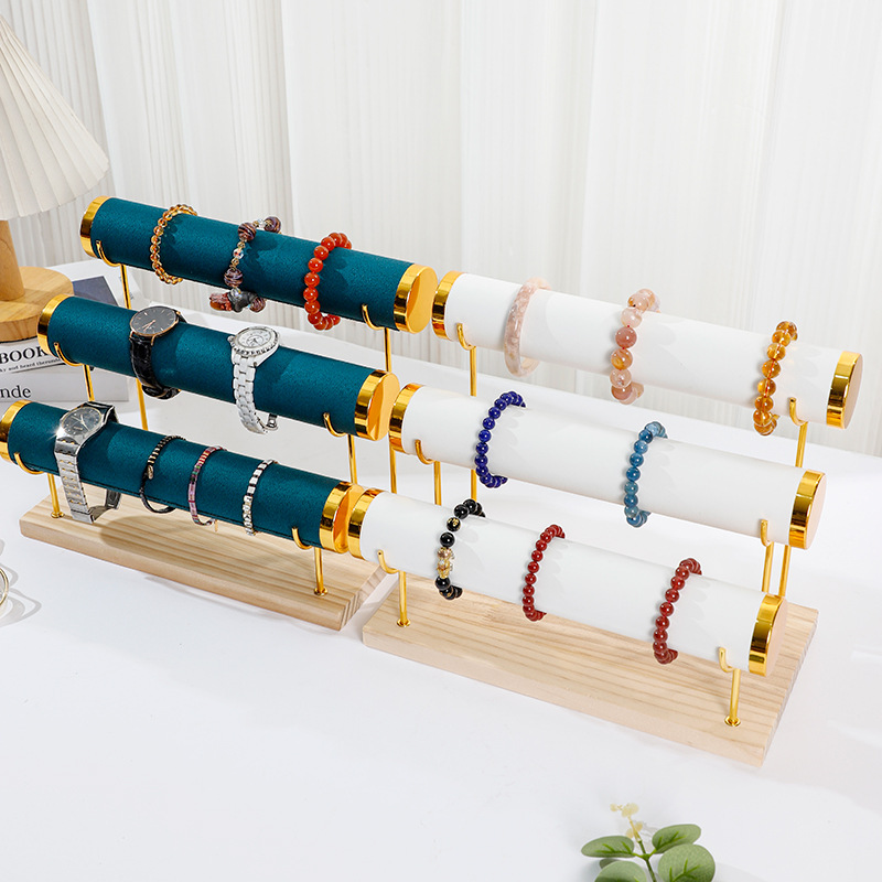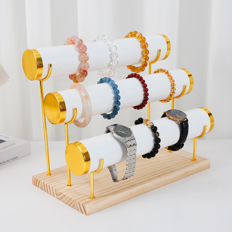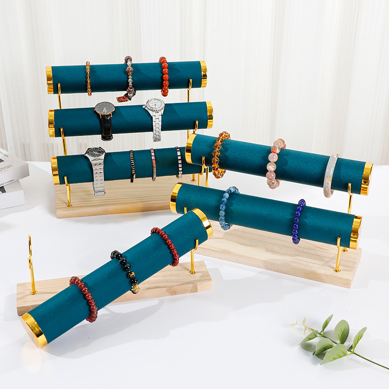 高档轻奢实木展示架手链手镯手表饰品实木铁艺绒布饰品收纳展示架
