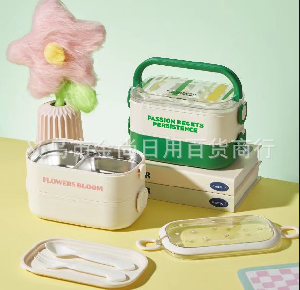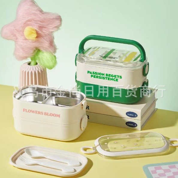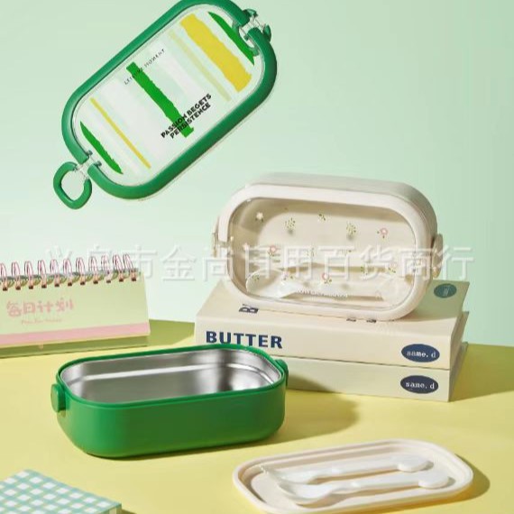 批发简约不锈钢便当盒学生便携午餐盒上班族带盖饭盒密封卡通萌趣