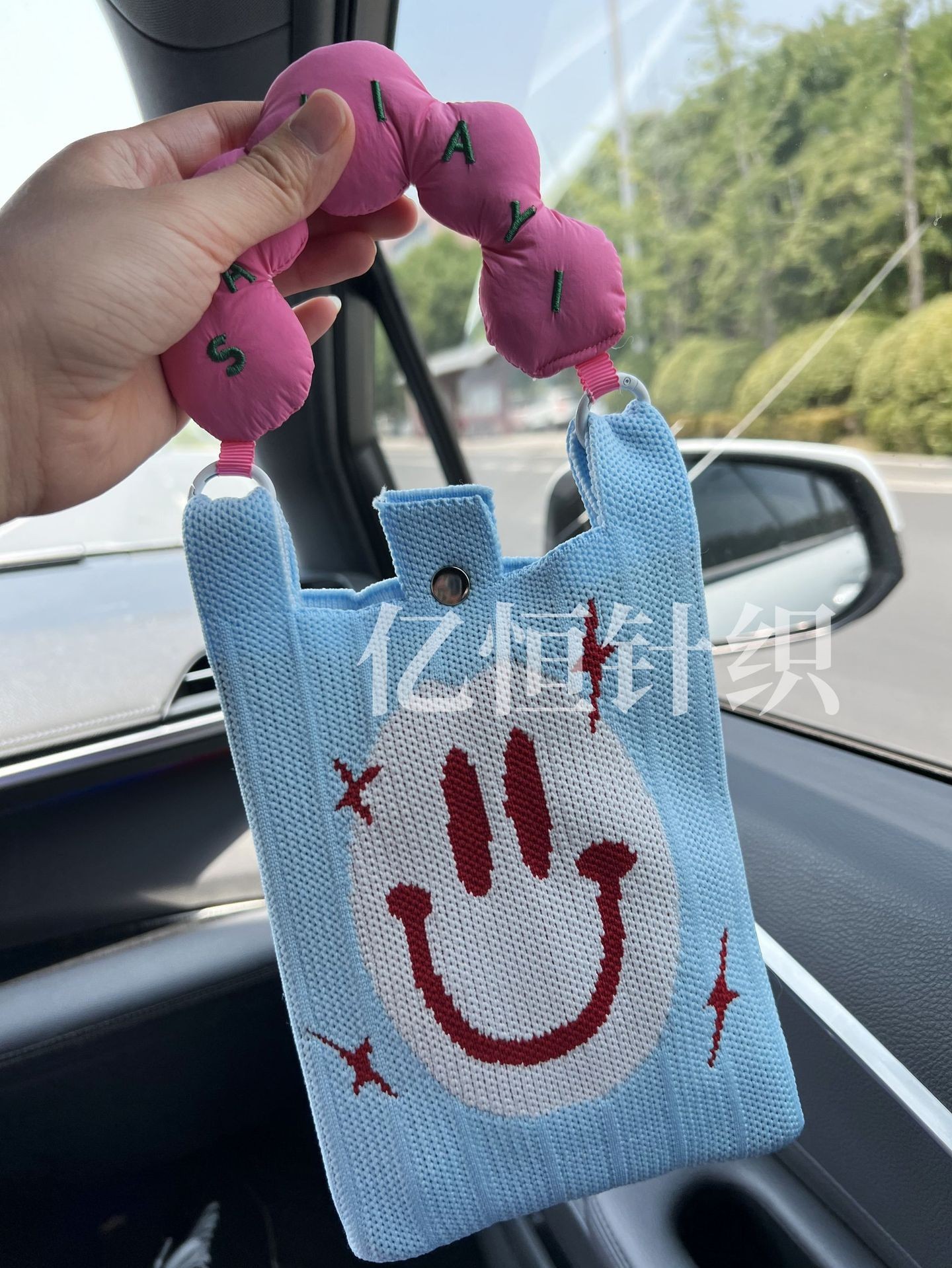 高级感可爱卡通针织手机包时尚小众百搭多巴胺色斜挎针织手腕包
