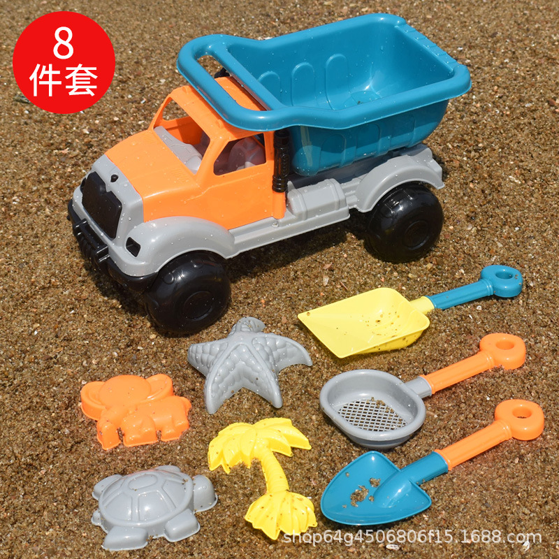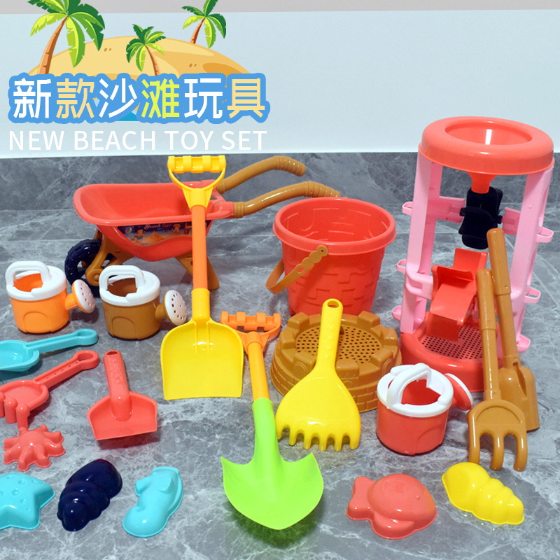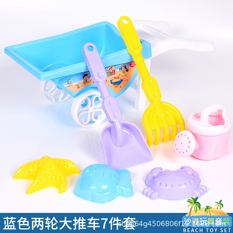 沙滩儿童玩具大号沙滩推车沙漏卡通车玩具车沙铲套装夏季戏水工具
