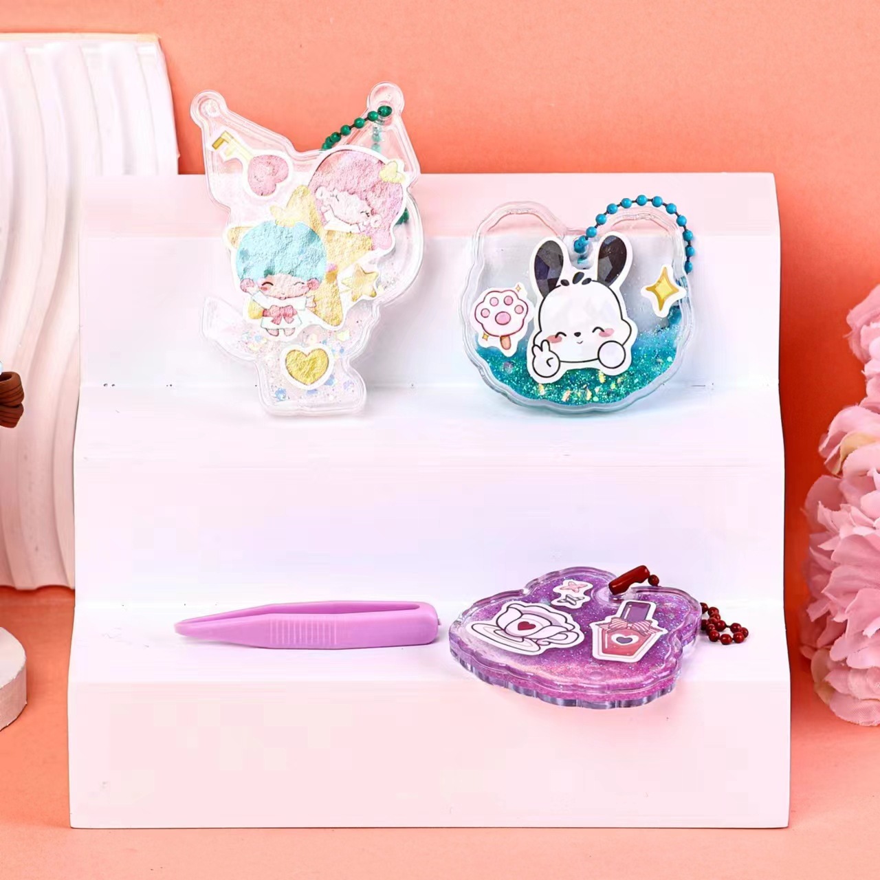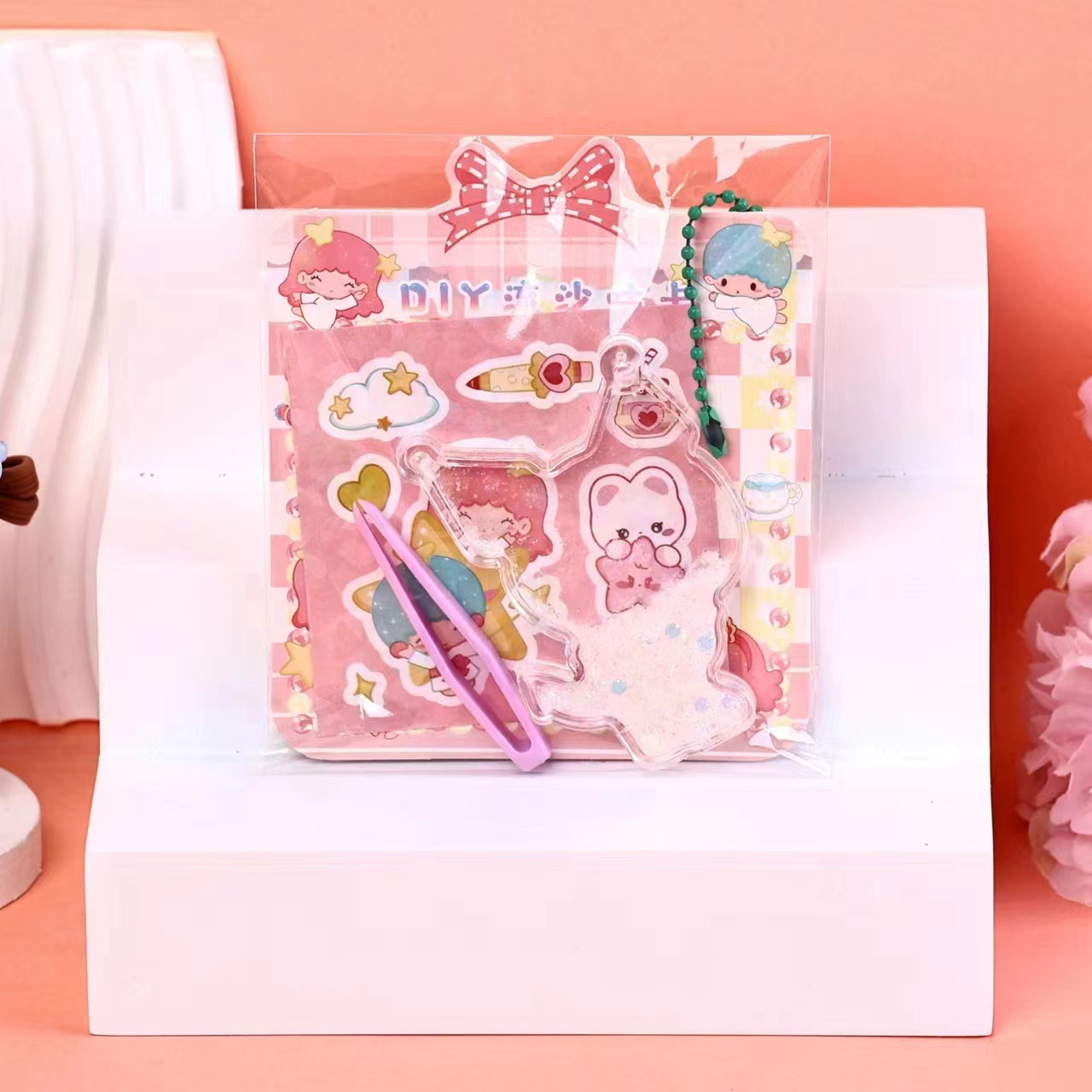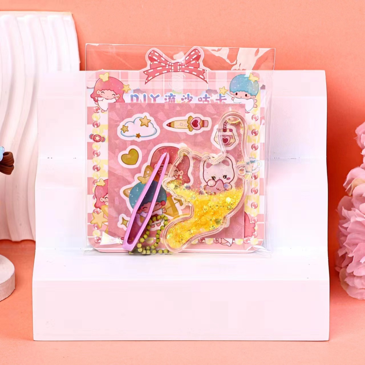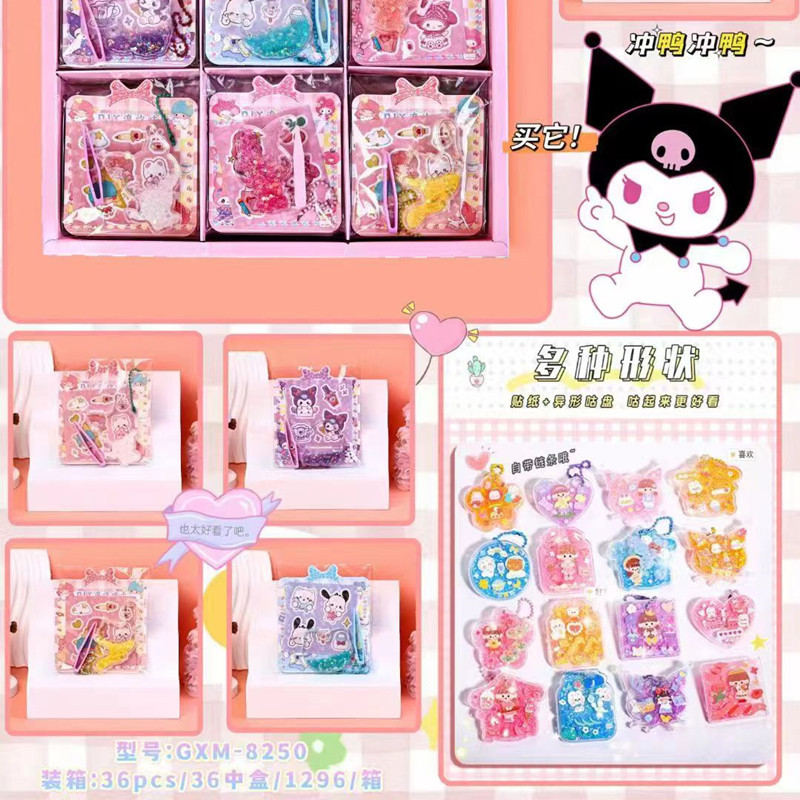 DIY流沙咕卡手帐贴纸 儿童创意手工素材包 流沙咕卡盘钥匙扣挂件