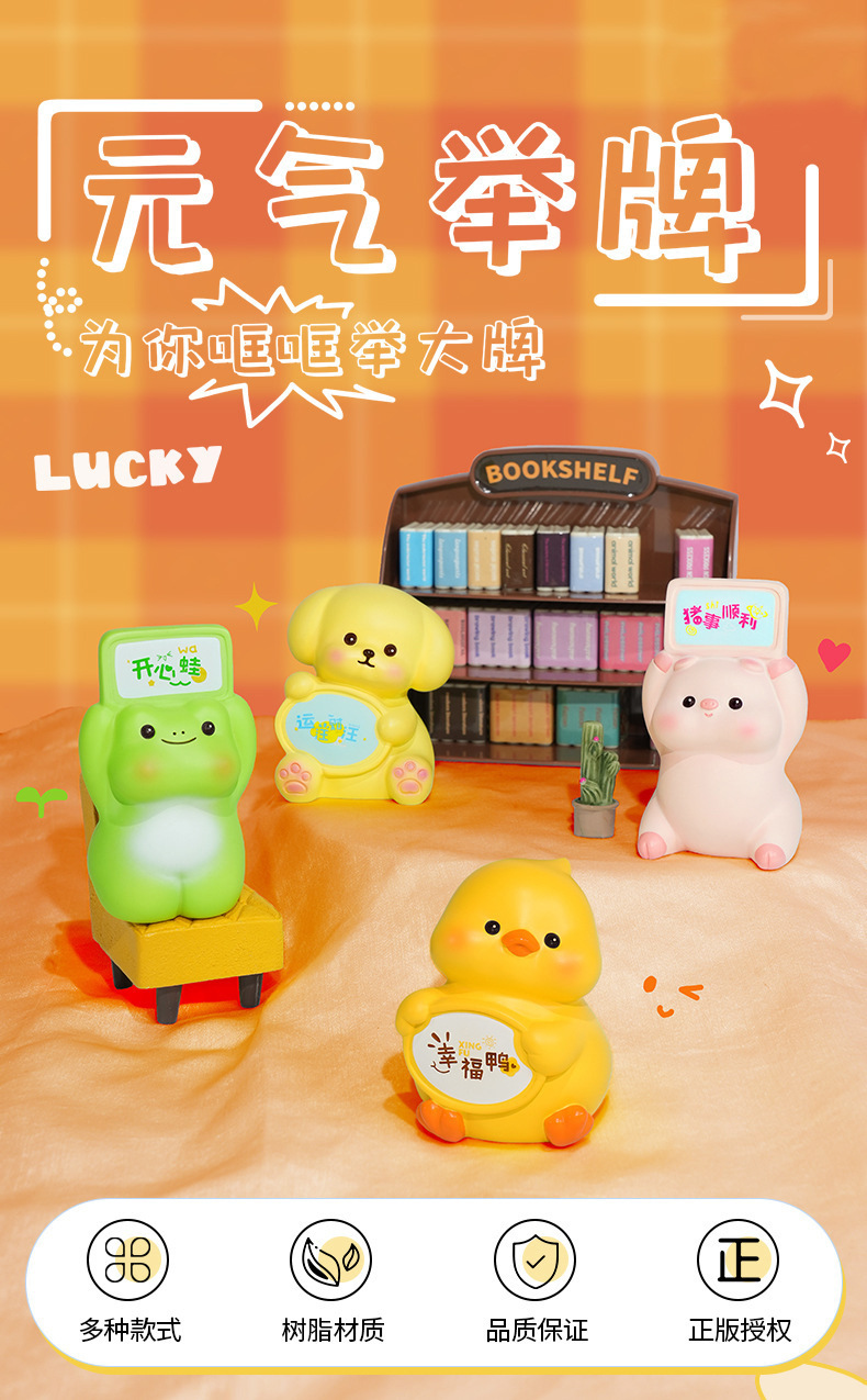 创意卡通小摆件元气举牌家居好物办公室桌面汽车车内装饰摆件批发