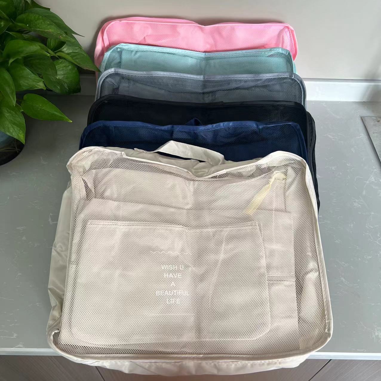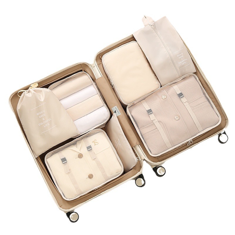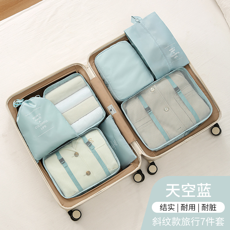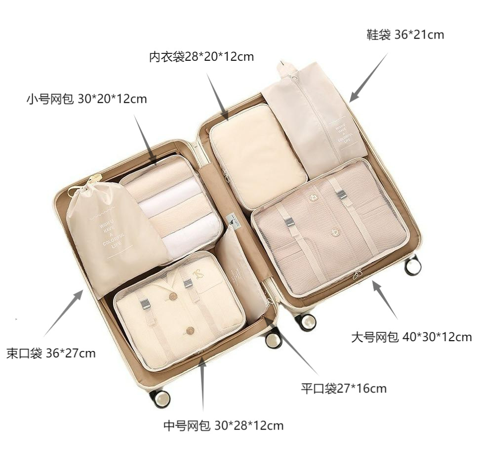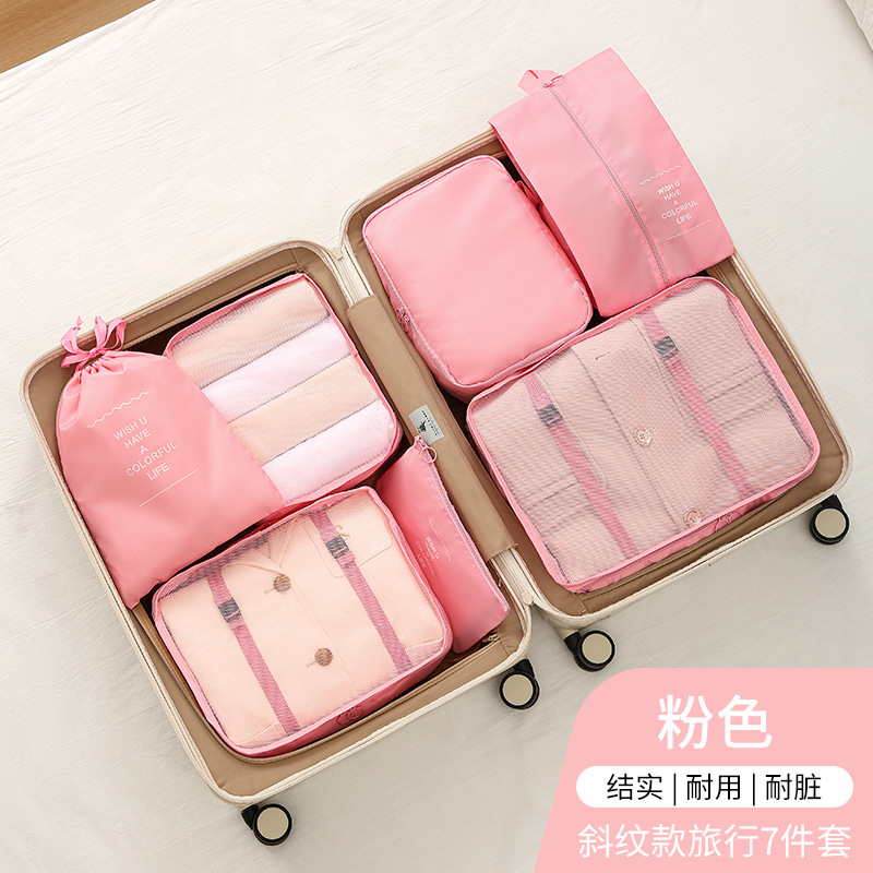 斜纹七件套旅行收纳袋束口袋套装衣服整理袋旅游行李衣物内衣收纳