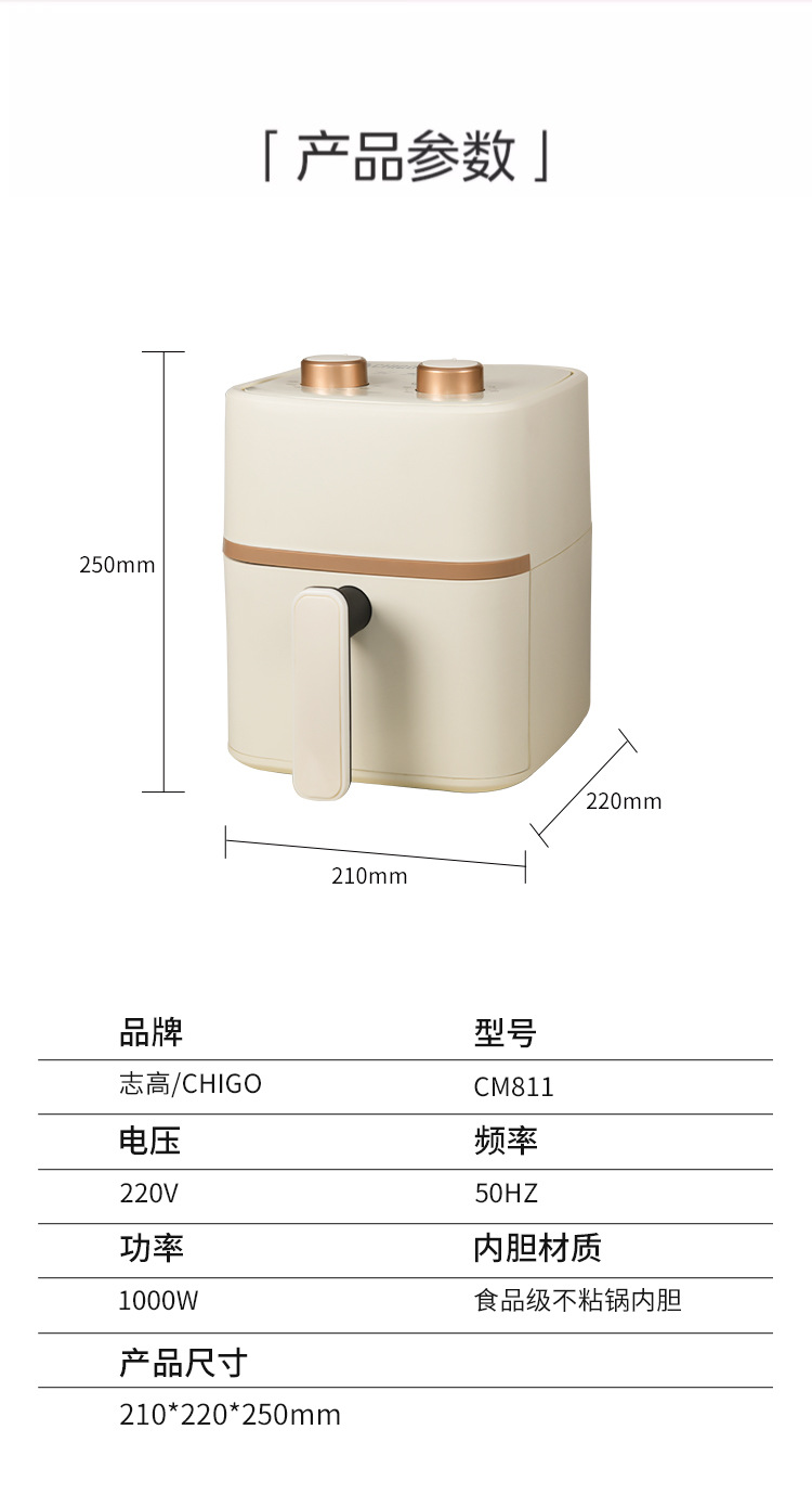 志高4L空气炸锅家用大容量全自动小型多功能智能薯条机厂家批发