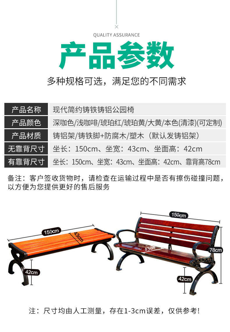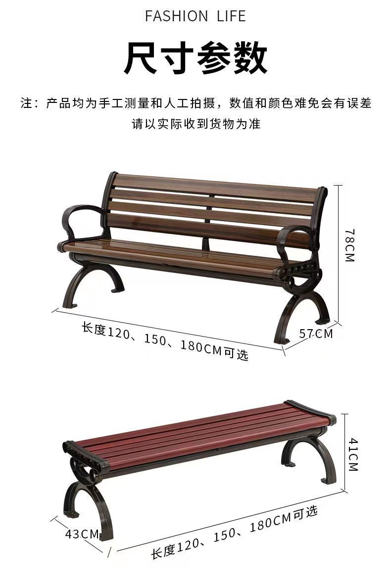 公园长椅户外长椅子实木园林椅塑木有无靠背坐椅广场长凳子铸铝