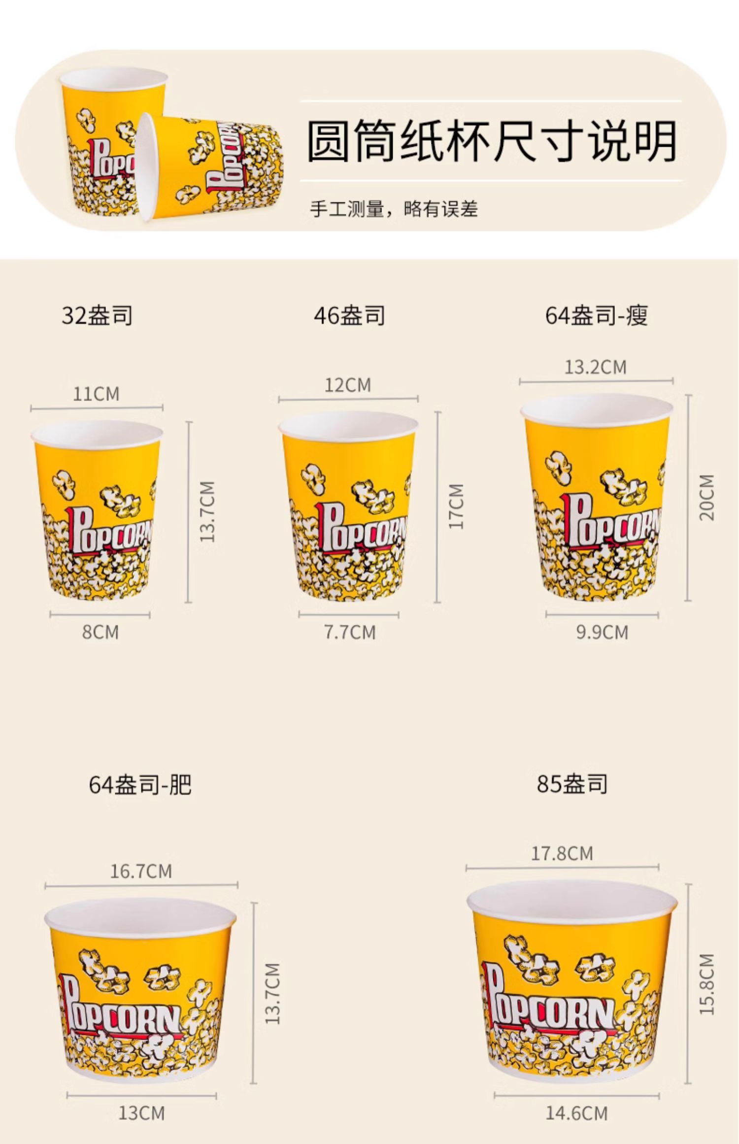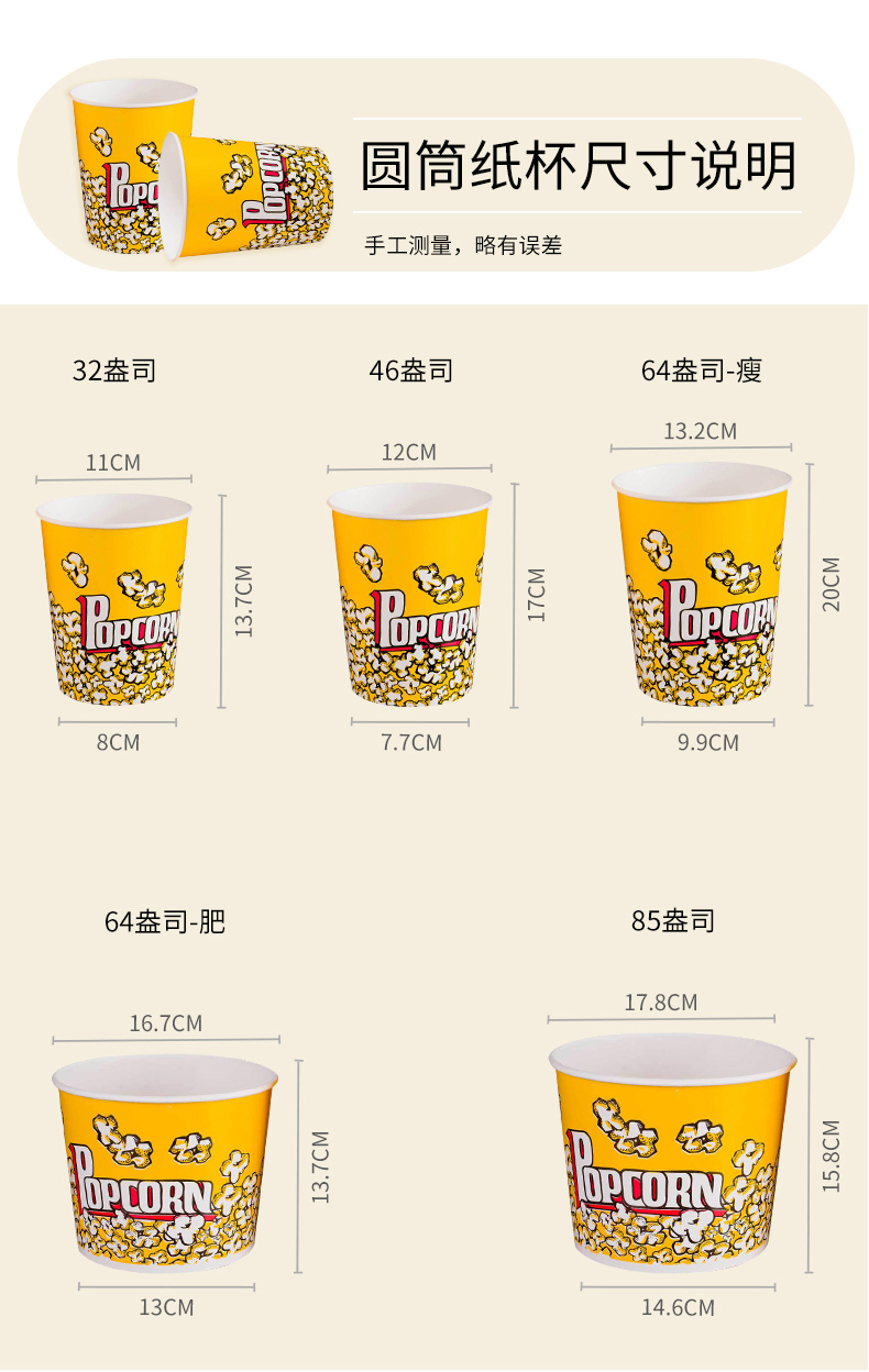 1E31爆米花纸杯热烈32盎司46盎司16盎司85圆桶通用电影院爆米花筒