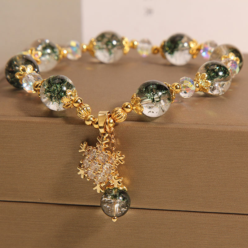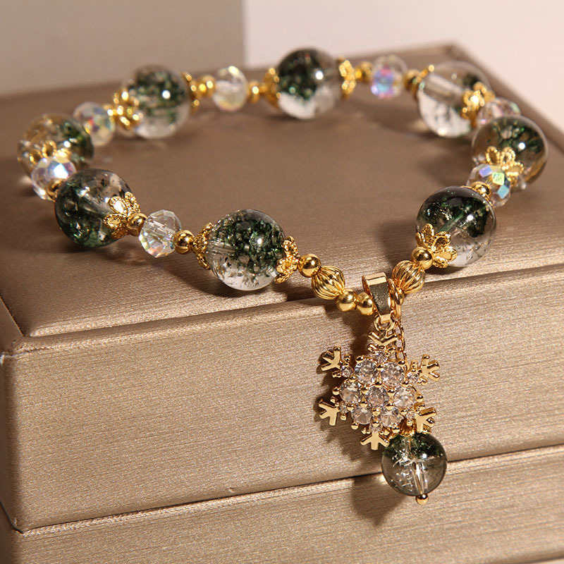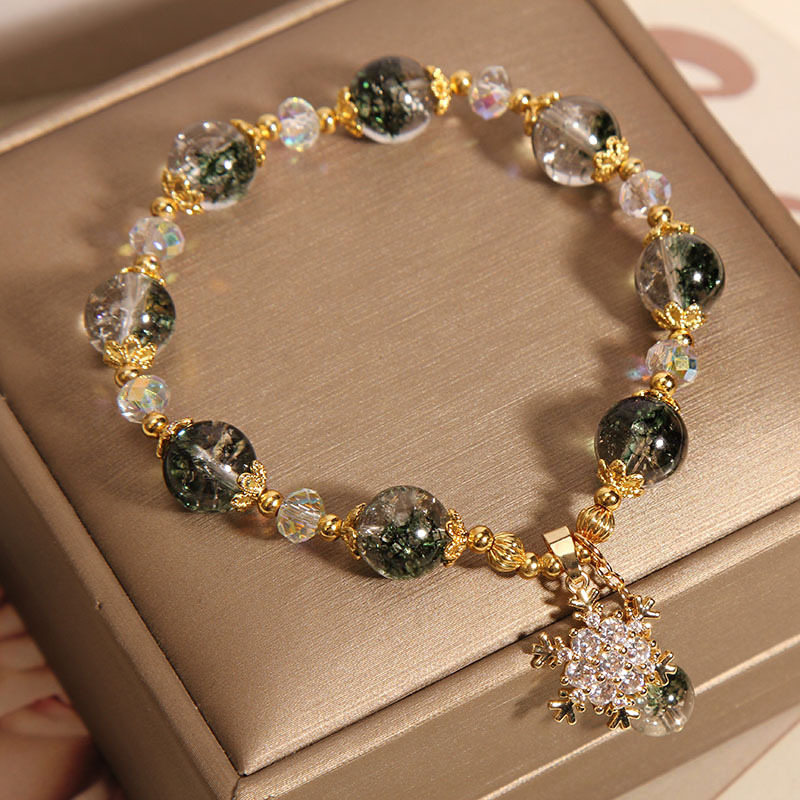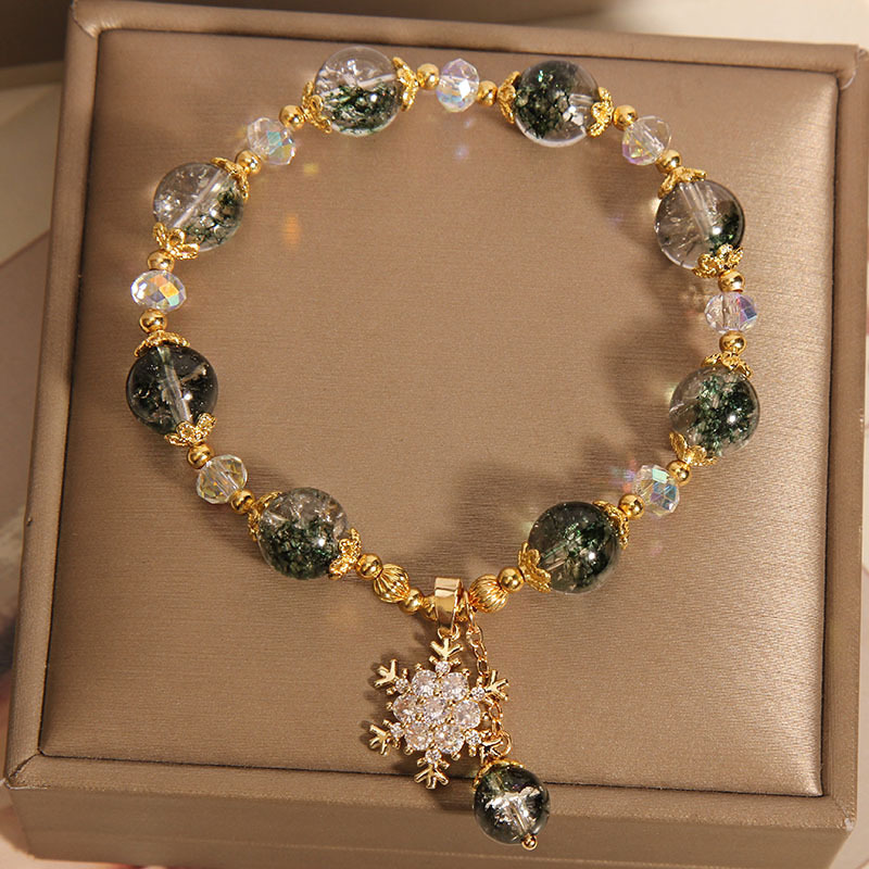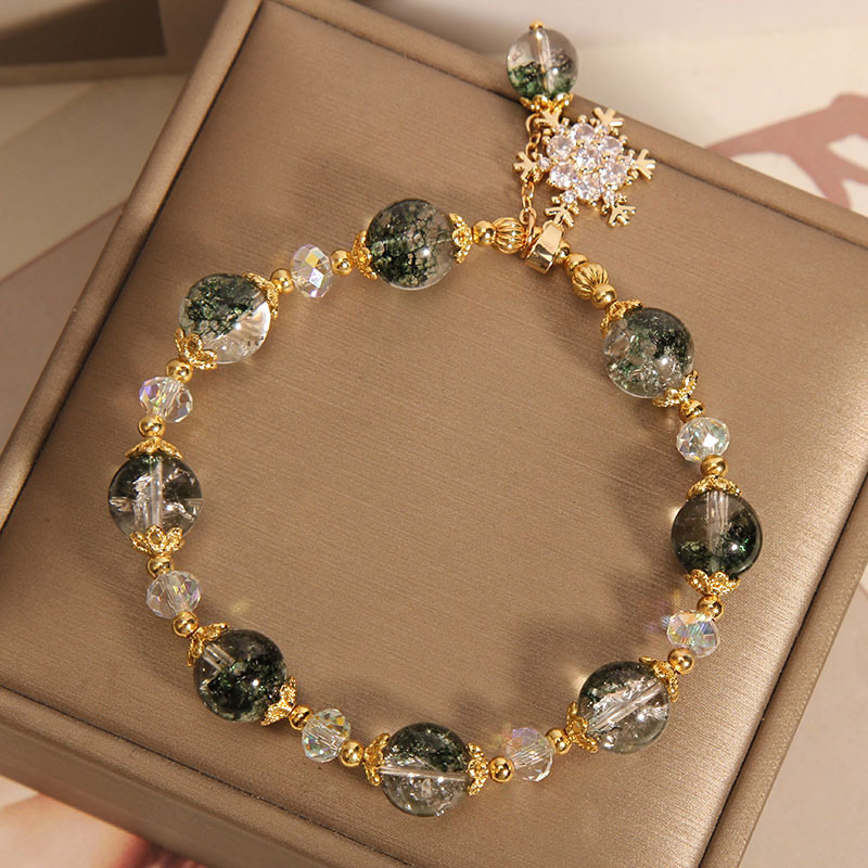 绿幽灵水晶手链女夏ins小众轻奢复古雪花吊坠手串送女友闺蜜礼物
