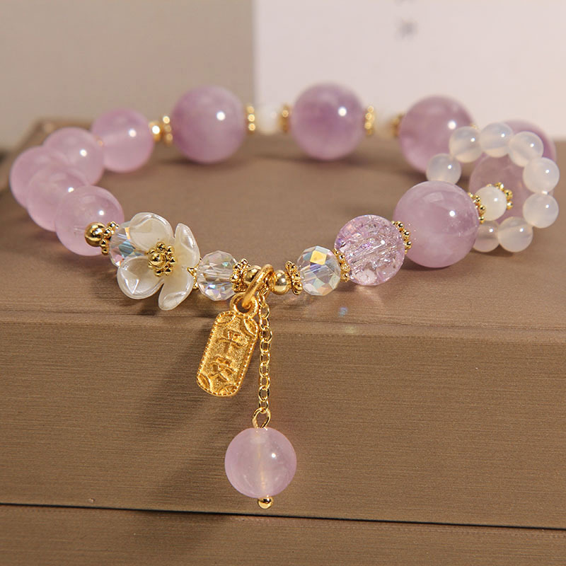 天然玉髓爆花水晶手链女韩版小清新森系简约个性花朵吊坠手串手环