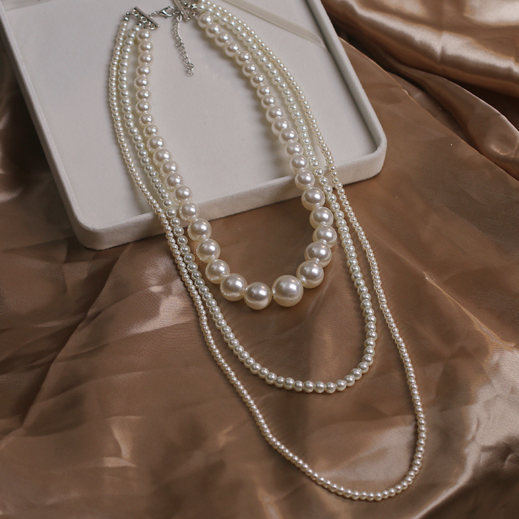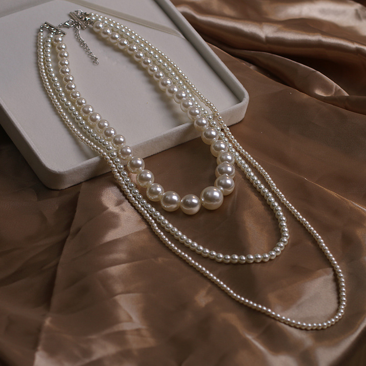 欧美轻奢风时尚多层珍珠项链女韩版简约长款百搭装饰毛衣链配饰品