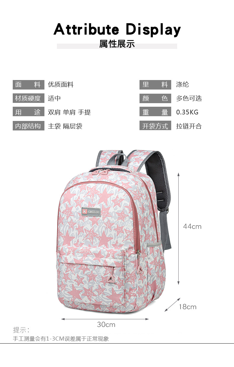 书包小学生轻便简约质感ins风韩版双肩包 休闲书包大容量背包女