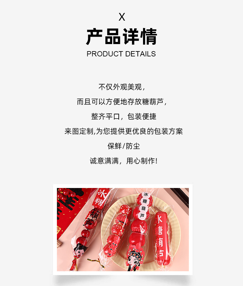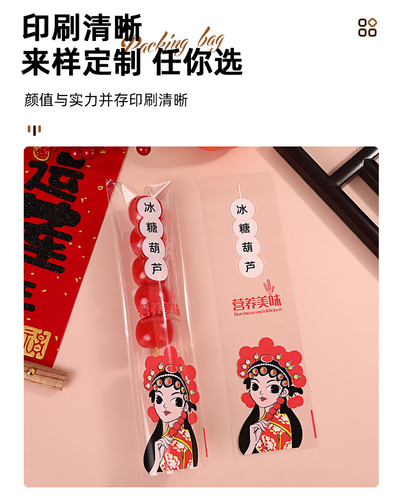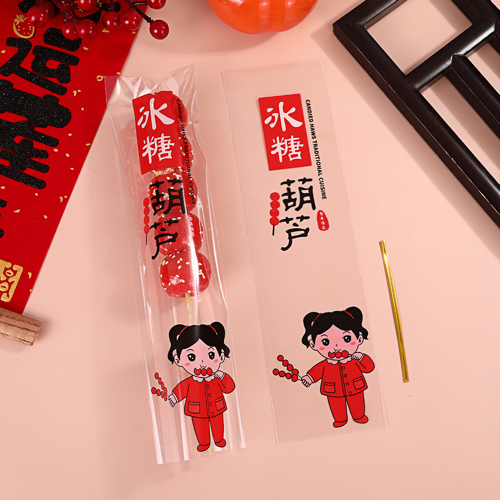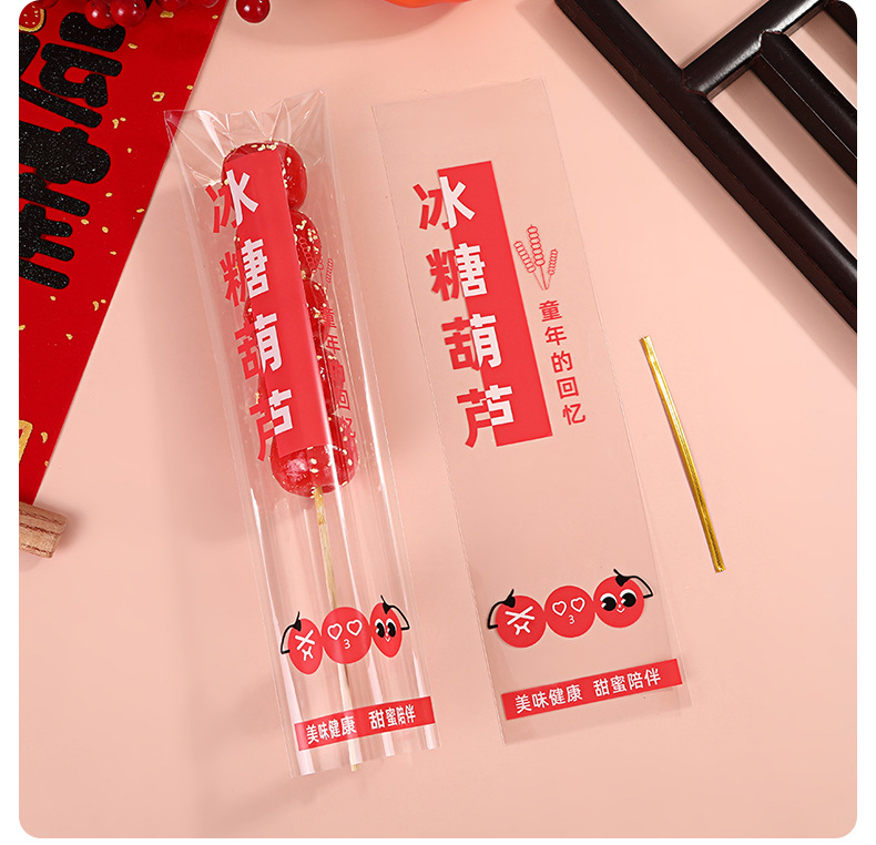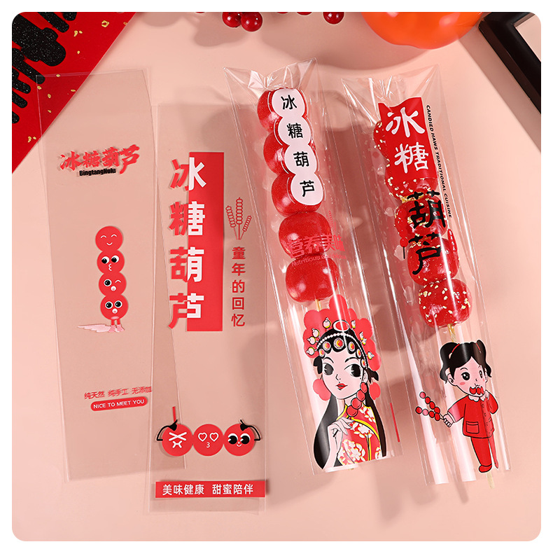 工厂现货冰糖葫芦包装袋独立透明糖葫芦棉花糖长条一次性糖果袋