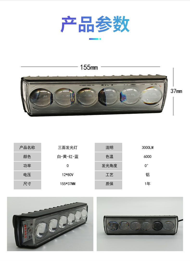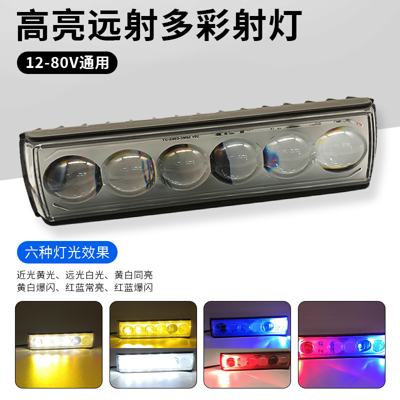 源头工厂摩托车射灯三面发光LED车灯带透镜外置前照大灯红蓝暴闪