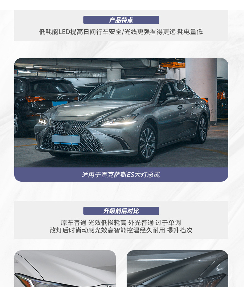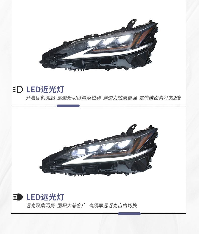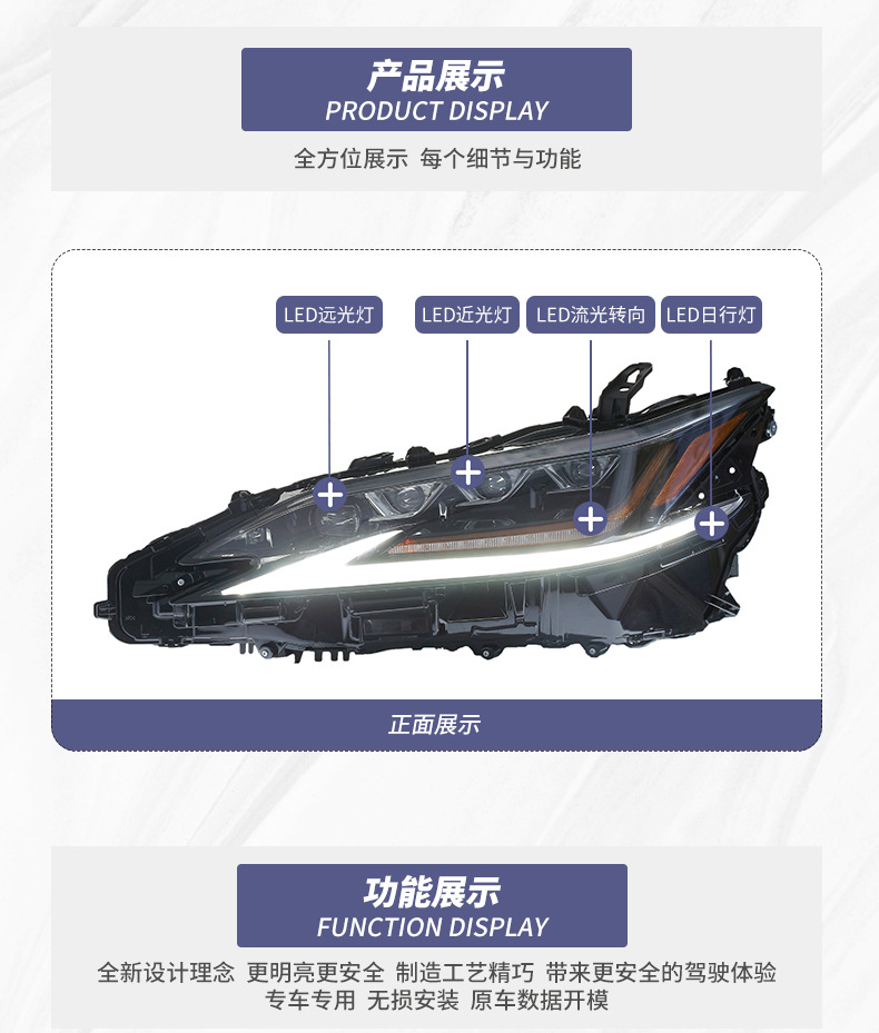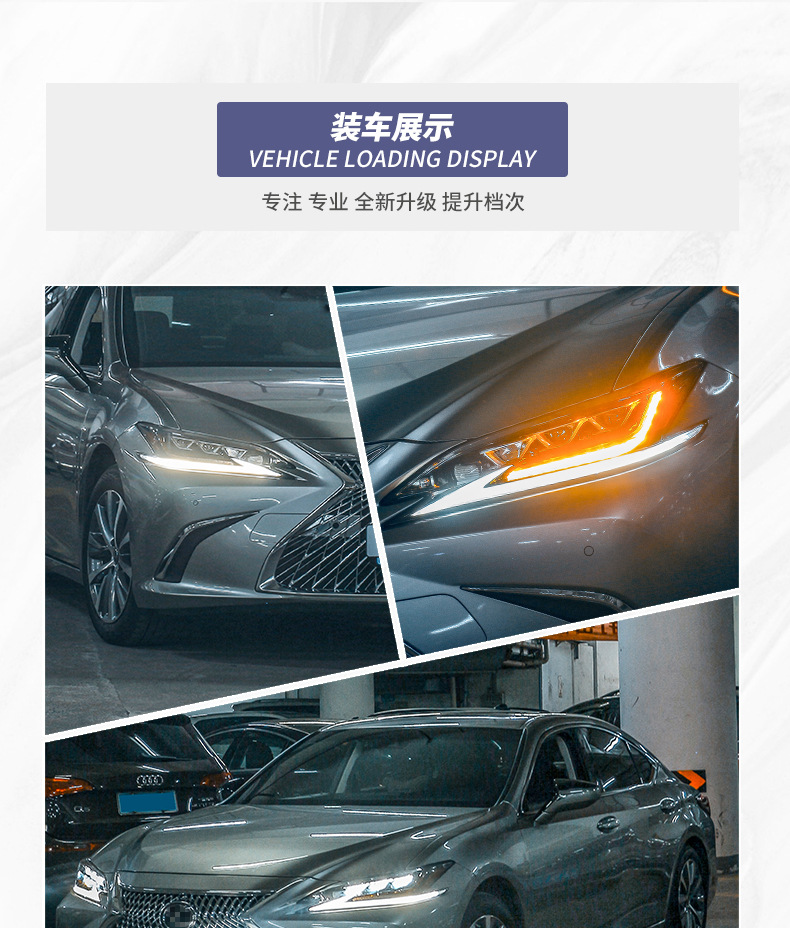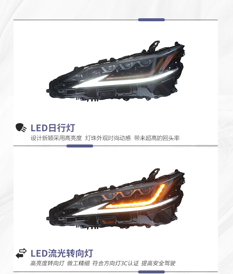 适用于18-23雷克萨斯ES大灯总成改装高配LED三眼矩阵大灯流光转向