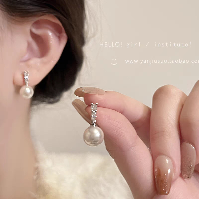 s925银珍珠耳钉女轻奢高级感小众网红百搭耳环秋冬耳饰批发