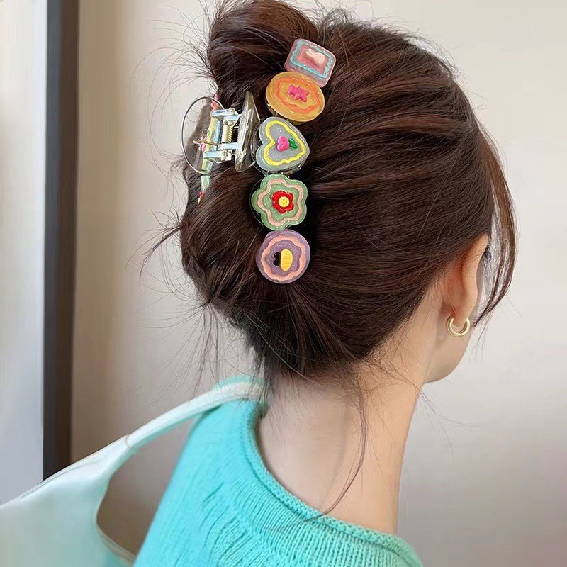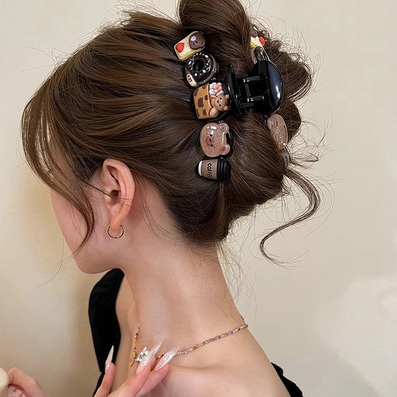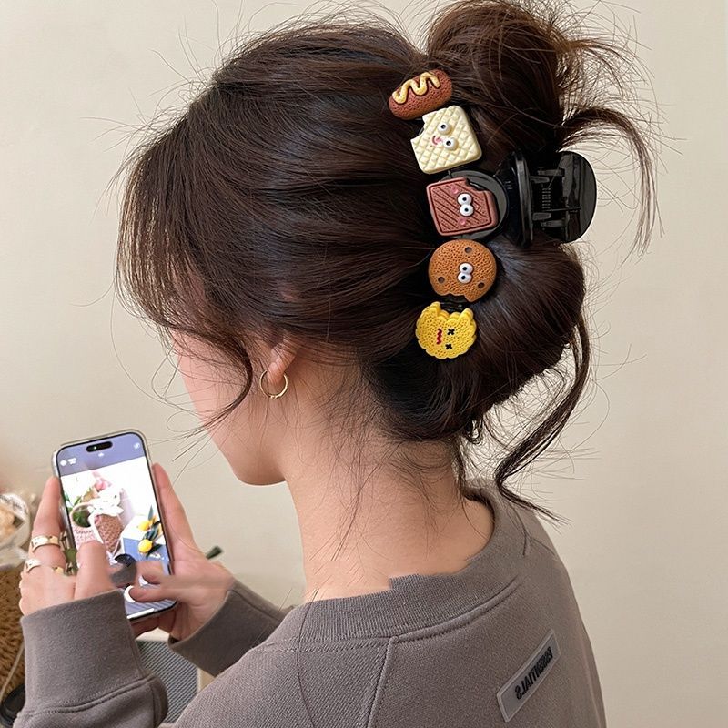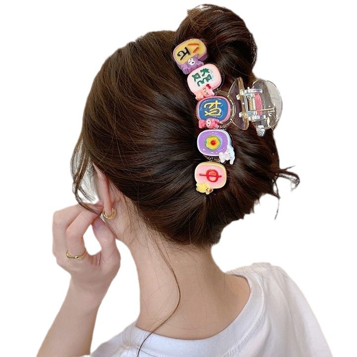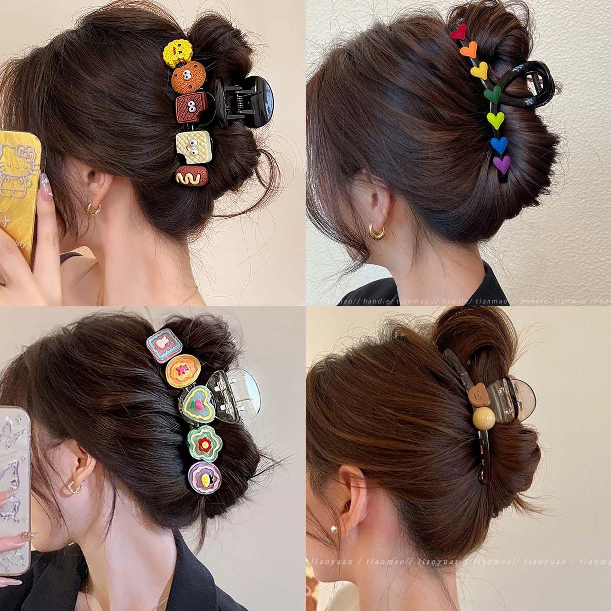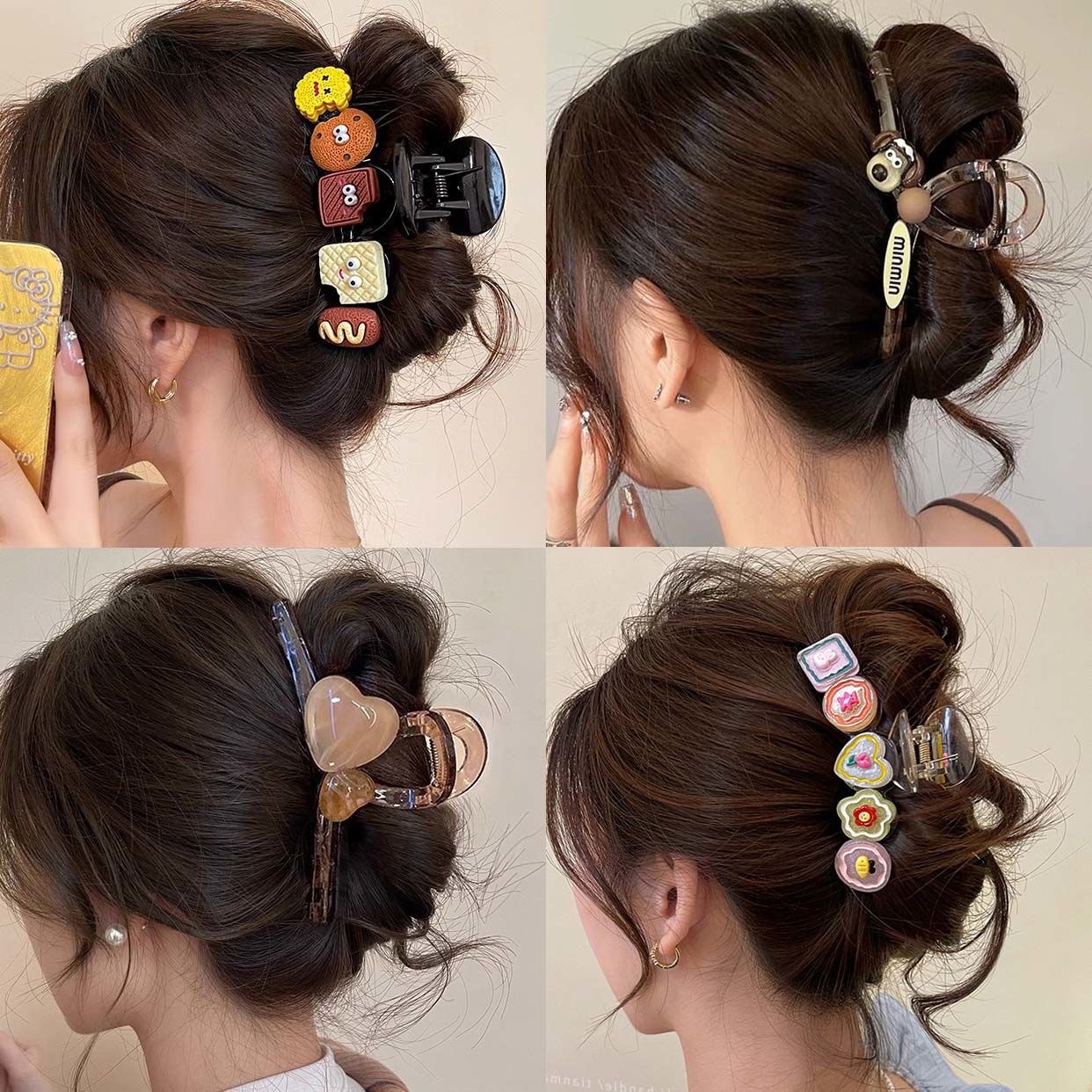 可爱卡通抓夹大号发量多ins韩国高级感后脑勺盘发鲨鱼发夹子发饰