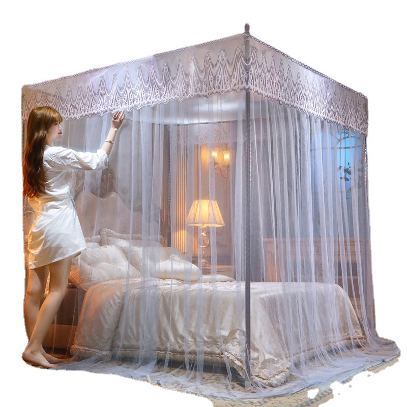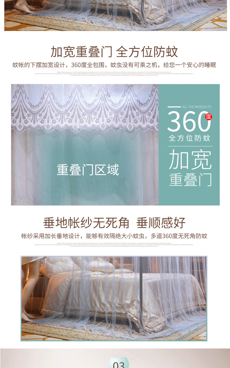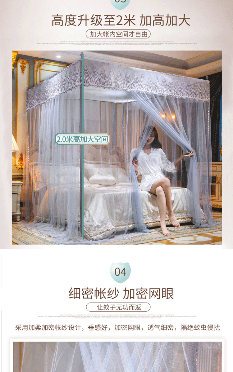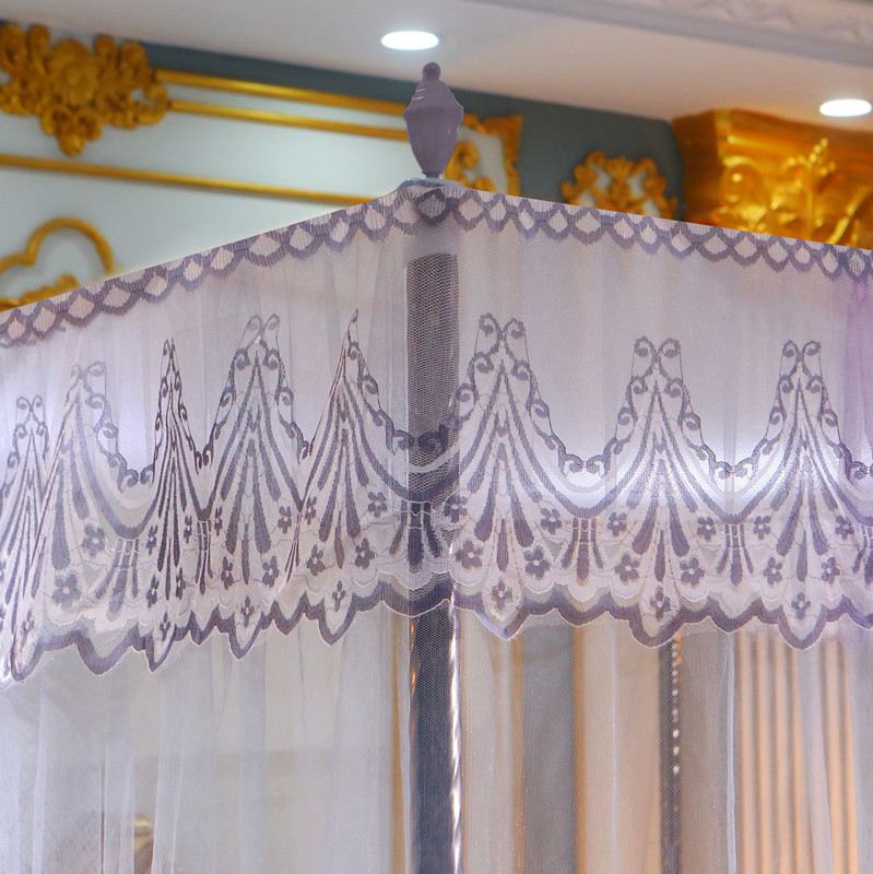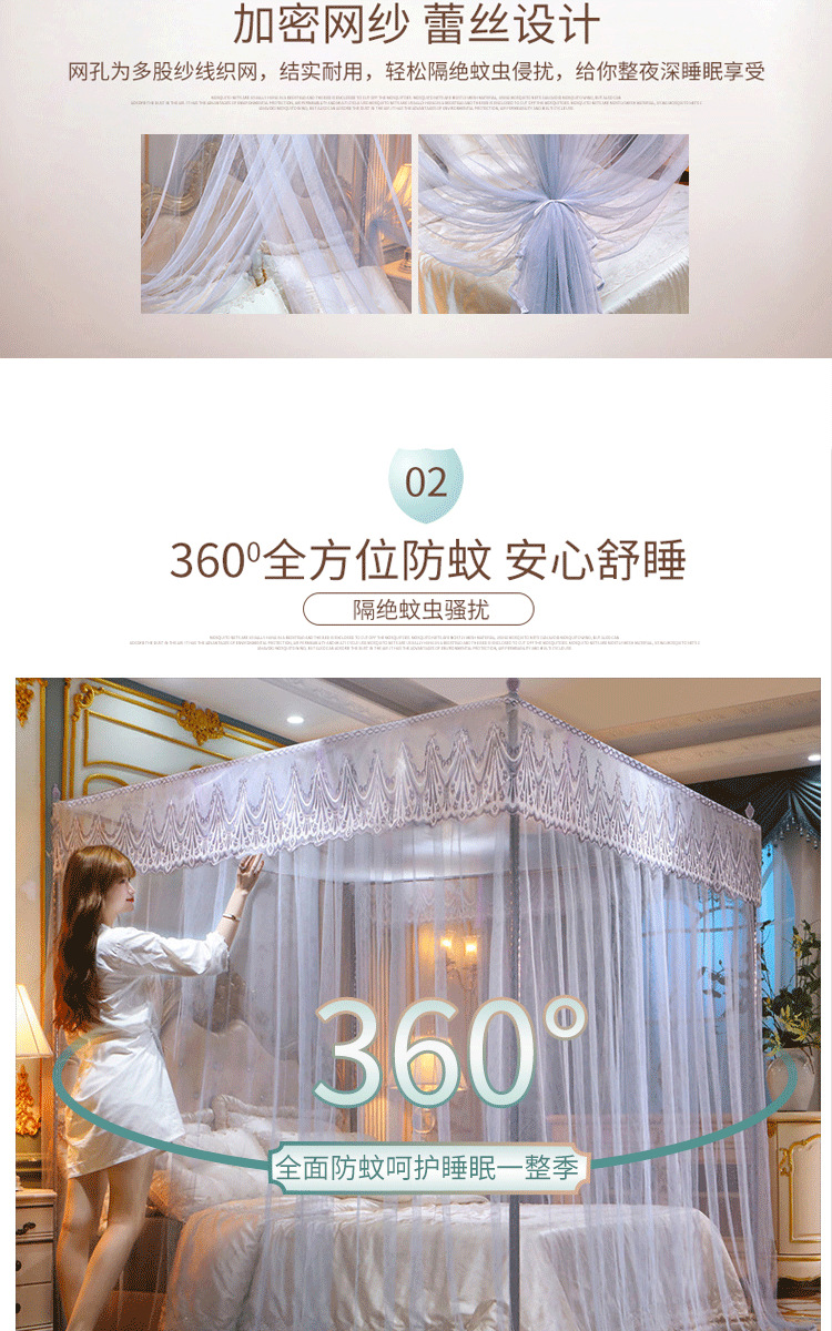 欧式宫廷蕾丝落地蚊帐三开门防尘顶公主风蚊帐不锈钢支架加密床幔