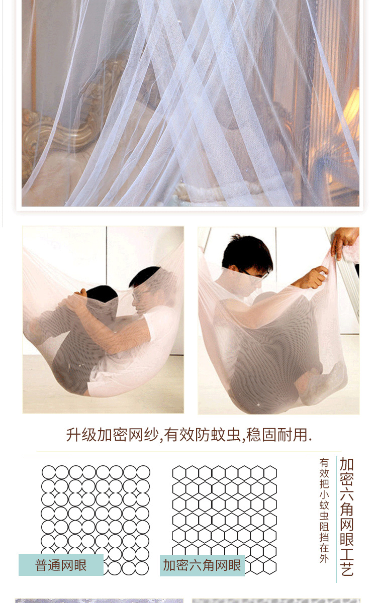 | 1.8*2.2 m (single mosquito net without bracket)(1.8*2.2米(单蚊帐不含支架)) | USD $6.13 | 958 set available |