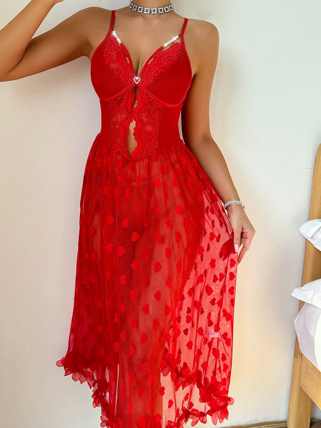 欧美外贸跨境性感睡衣蕾丝爱心印花连衣裙 透视情趣内衣舞台制服