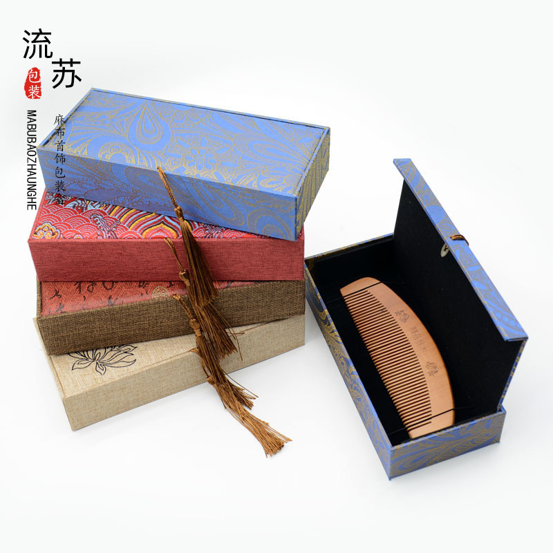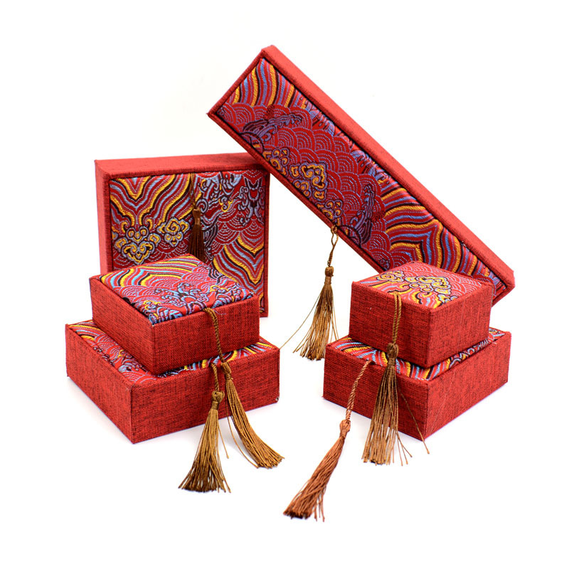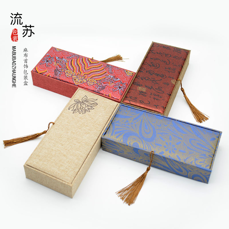 文玩首饰包装盒麻布流苏首饰盒珠宝手镯吊坠戒指盒玉器包装盒批发