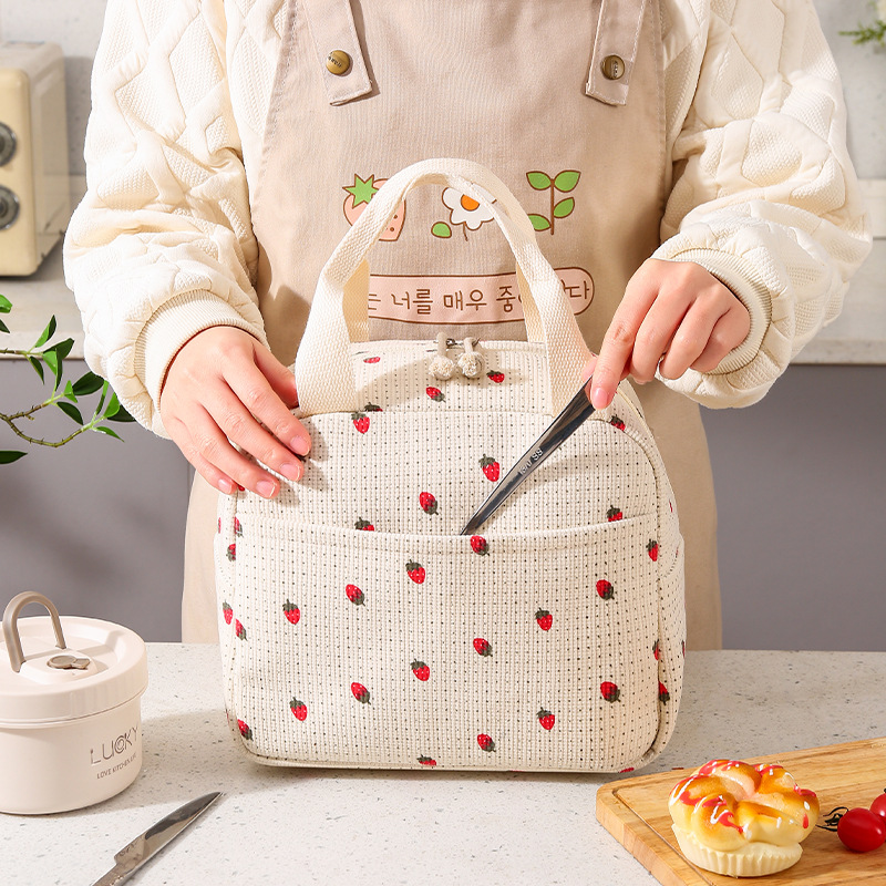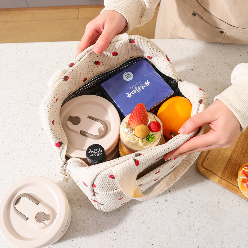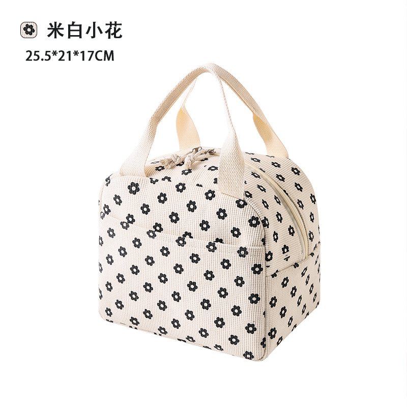 花色大号灯芯绒保温包午餐包手提便当包防水保冷冰包野餐包饭盒袋
