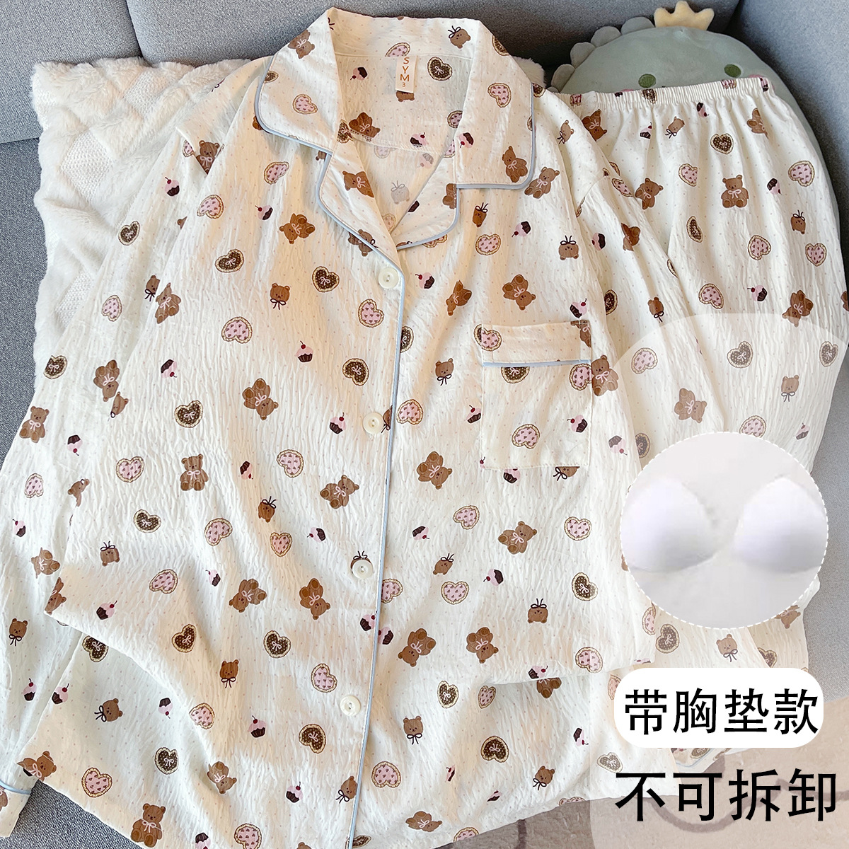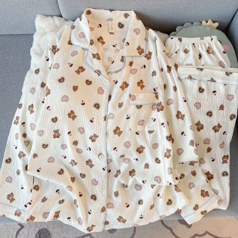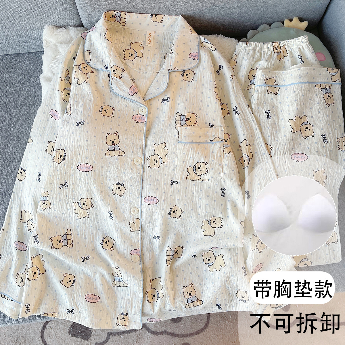 日系蝴蝶结KT猫大码睡衣女春秋季可爱波点家居服现货批发少女套装
