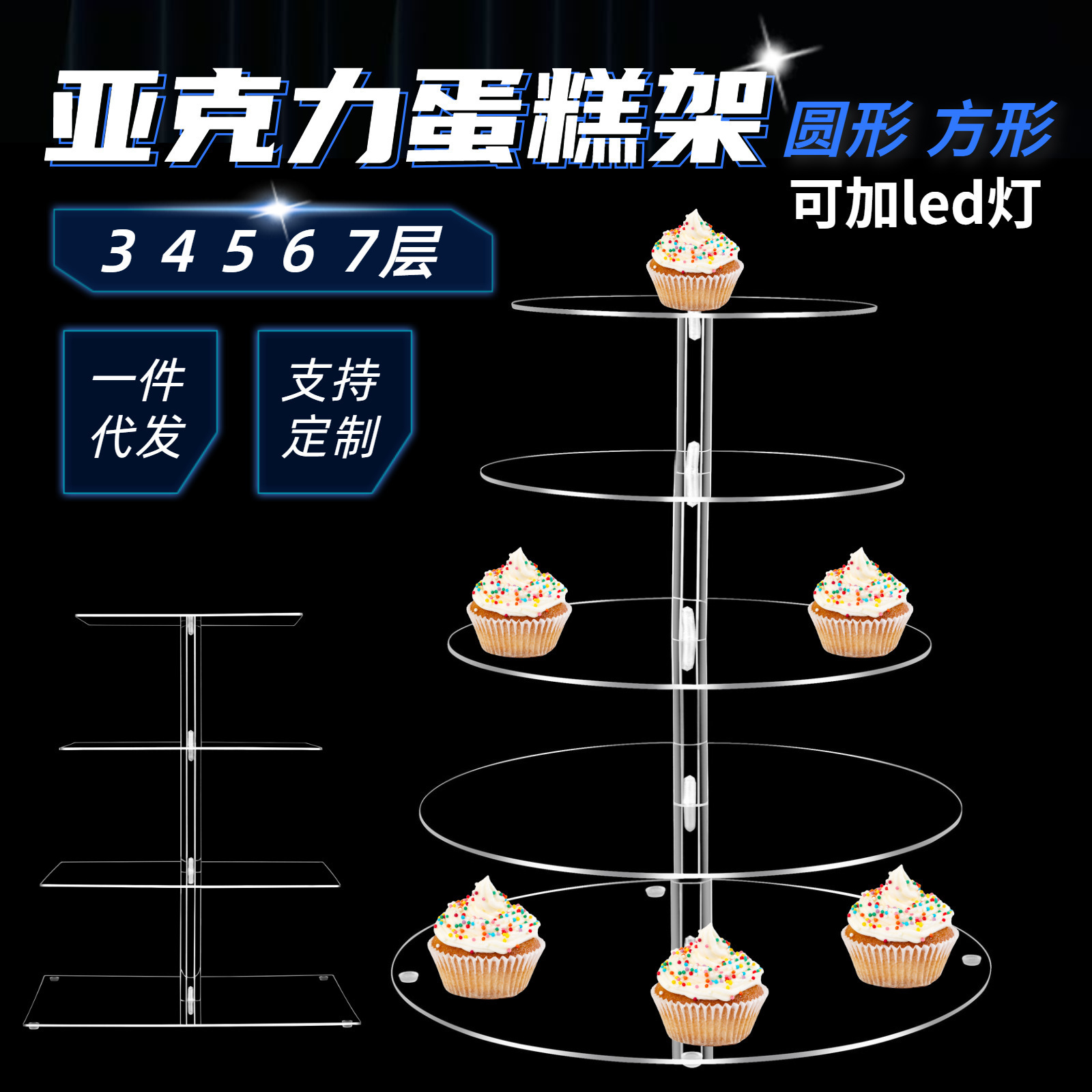 现货亚克力蛋糕架多层摆台塔状圆形方形可拆卸透明纸杯蛋糕架批发