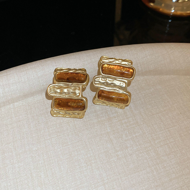 美拉德高级感银针几何不规则树脂爱心耳环气质轻奢耳钉时尚耳饰女