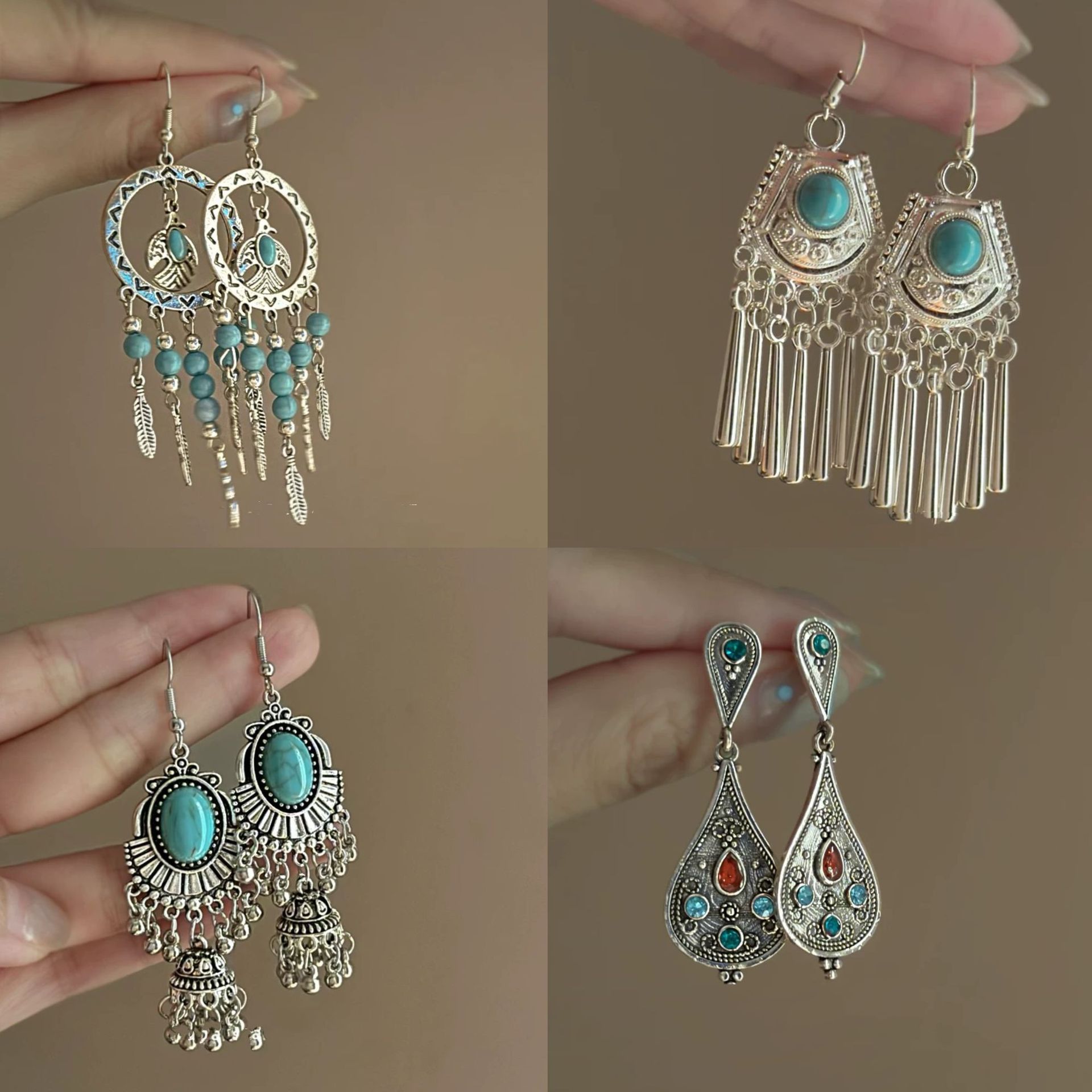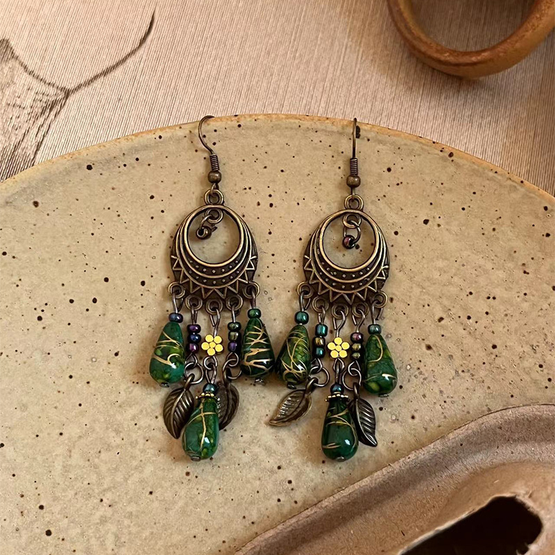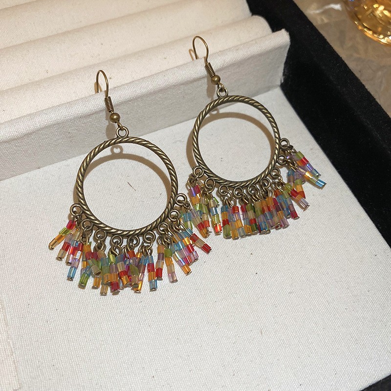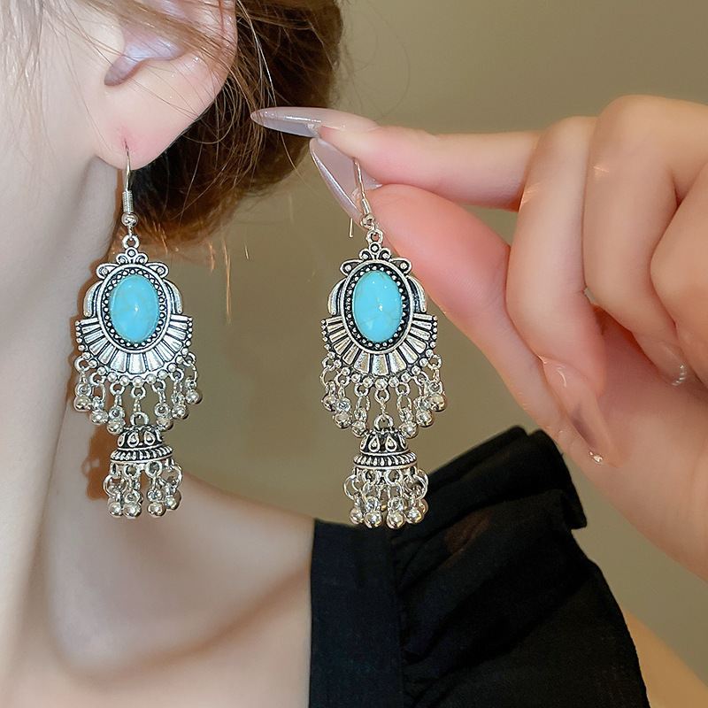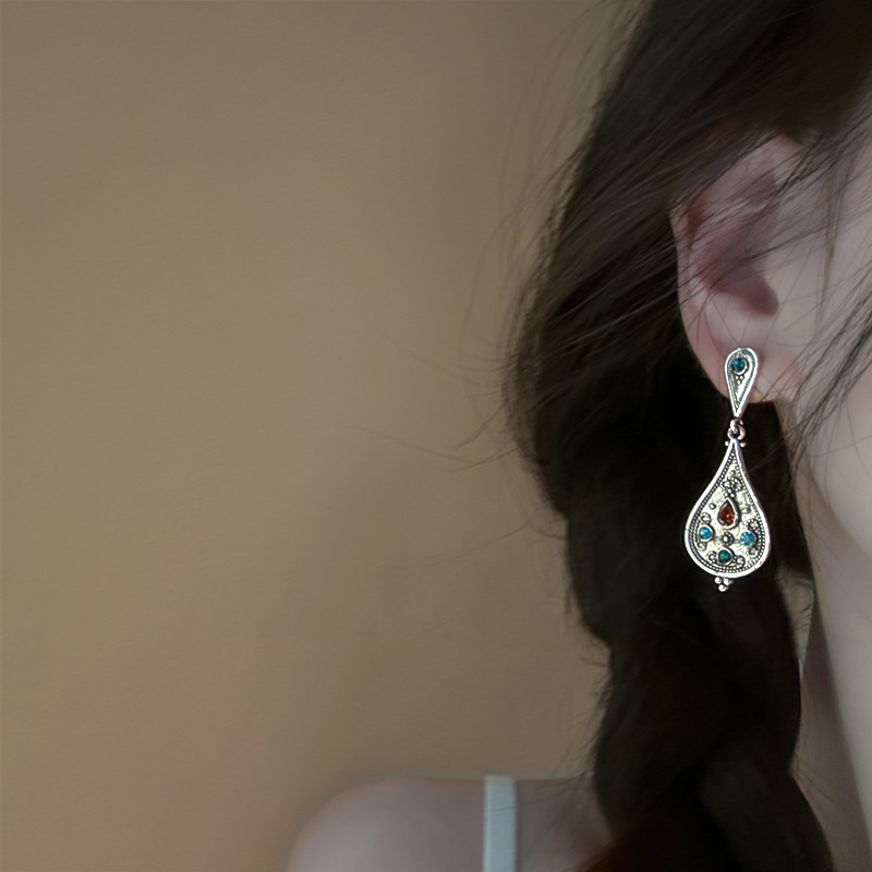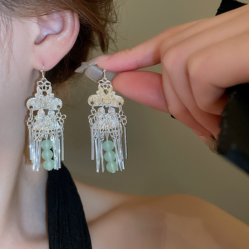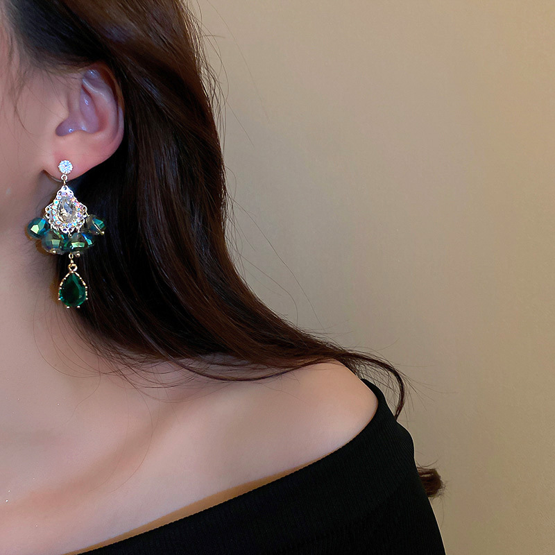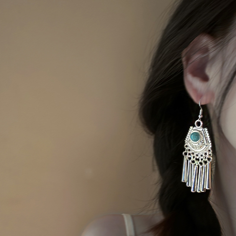 银针民族风人造水晶款羽毛流苏耳环个性设计耳坠复古轻奢通勤耳饰
