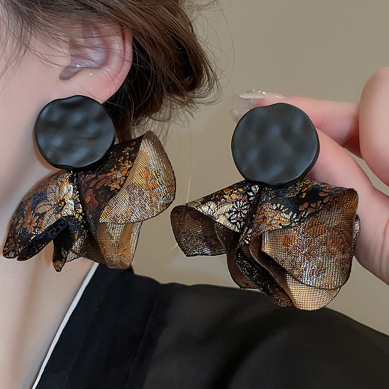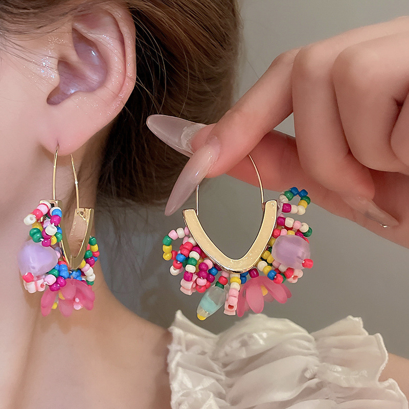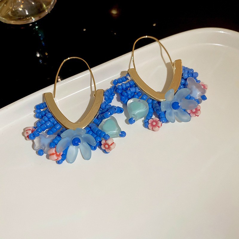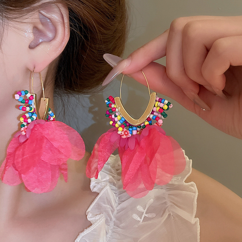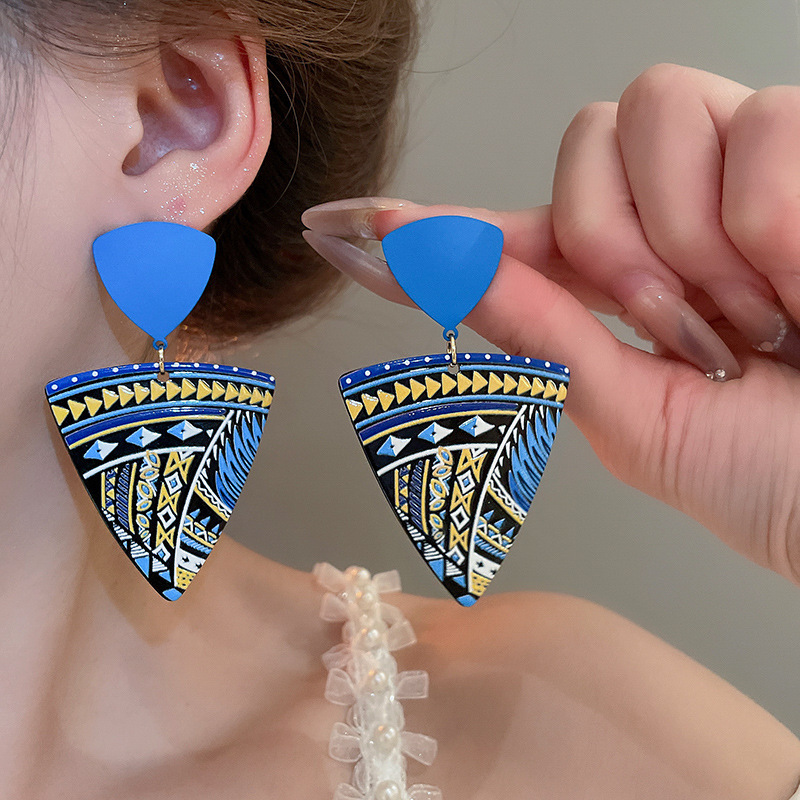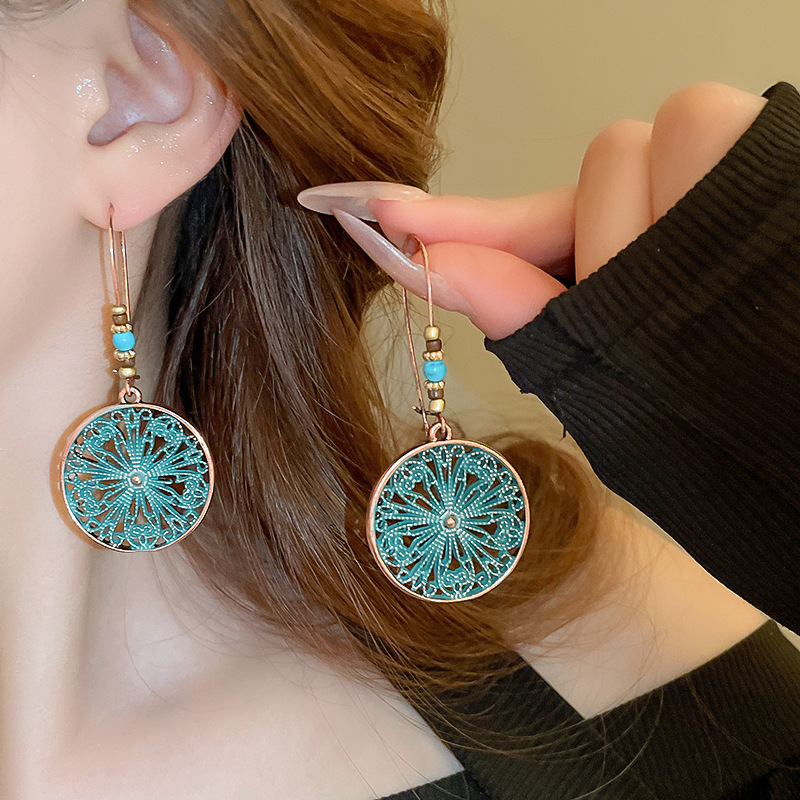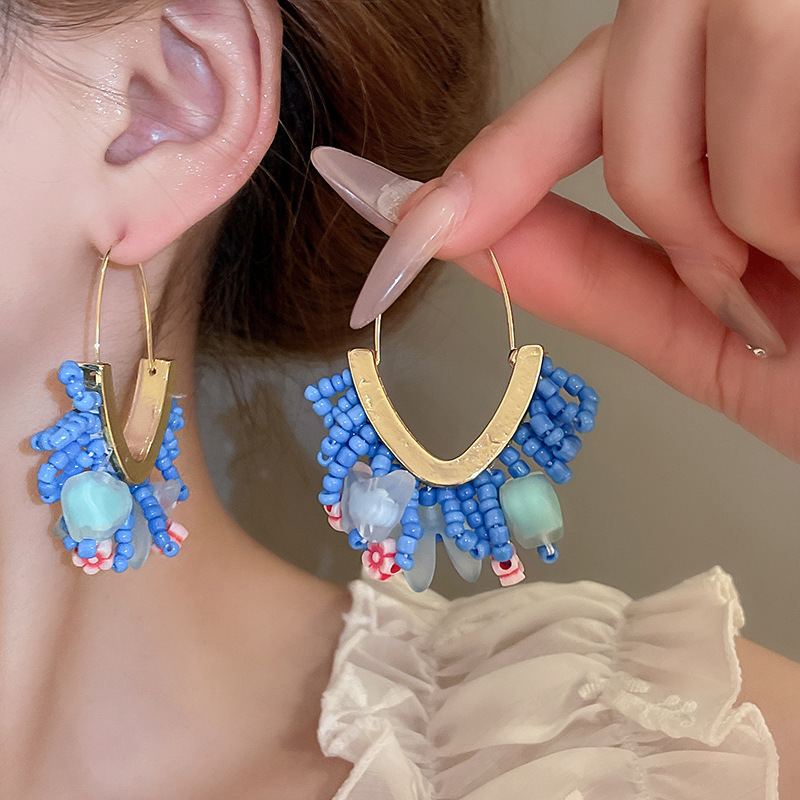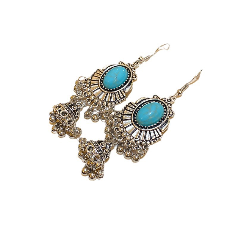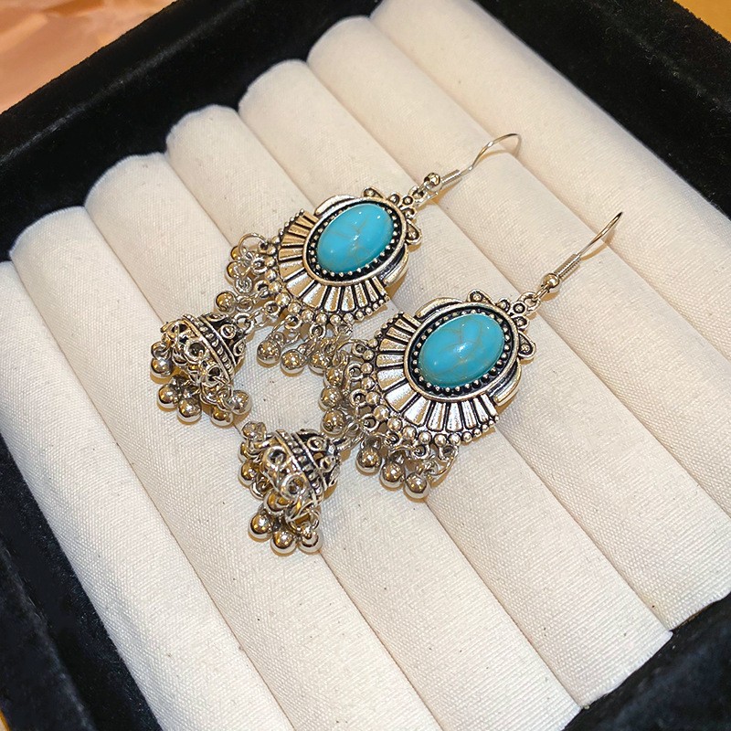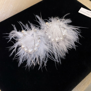 银针民族风人造水晶款羽毛流苏耳环个性设计耳坠复古轻奢通勤耳饰