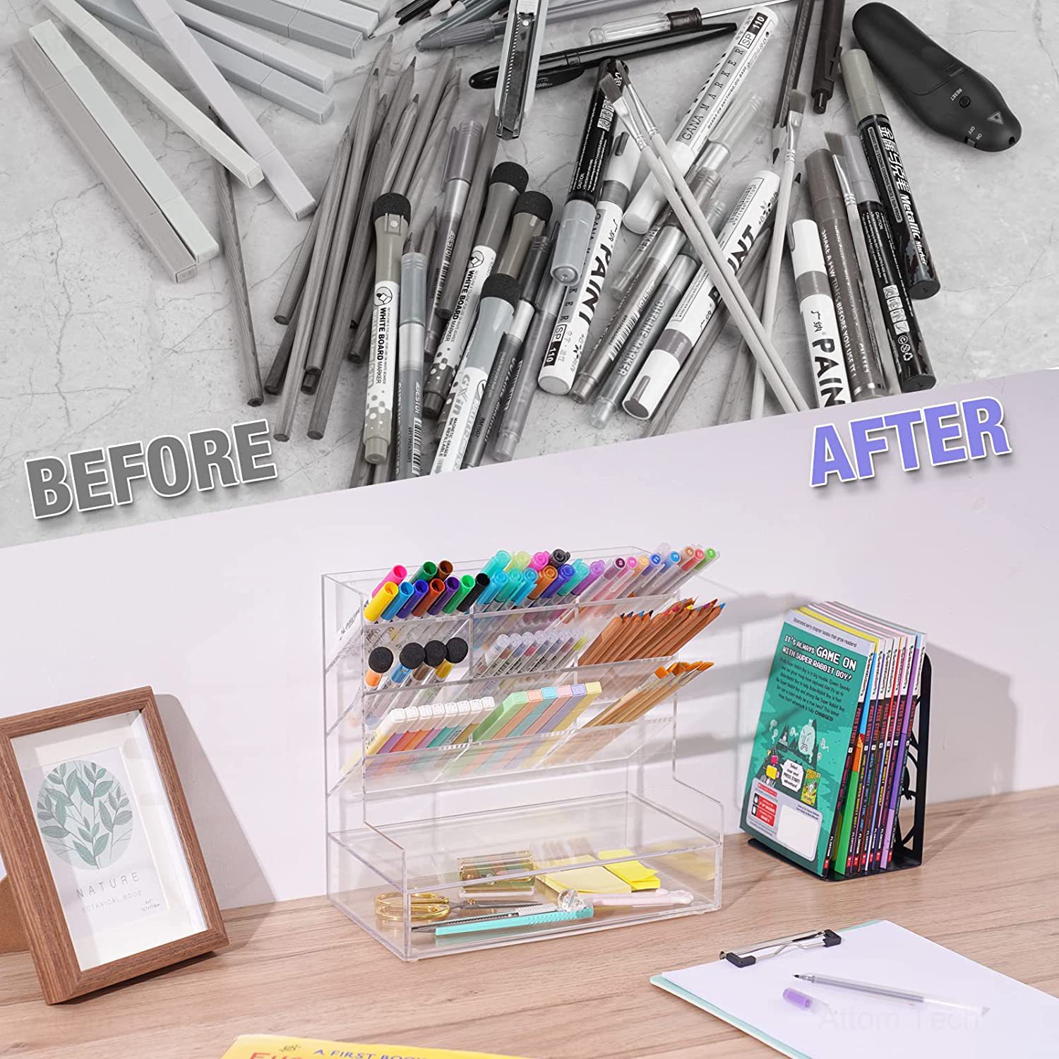 跨境亚克力收纳盒多功能办公桌12分格大容量马克笔整理收纳架